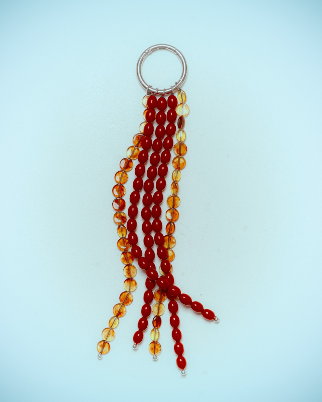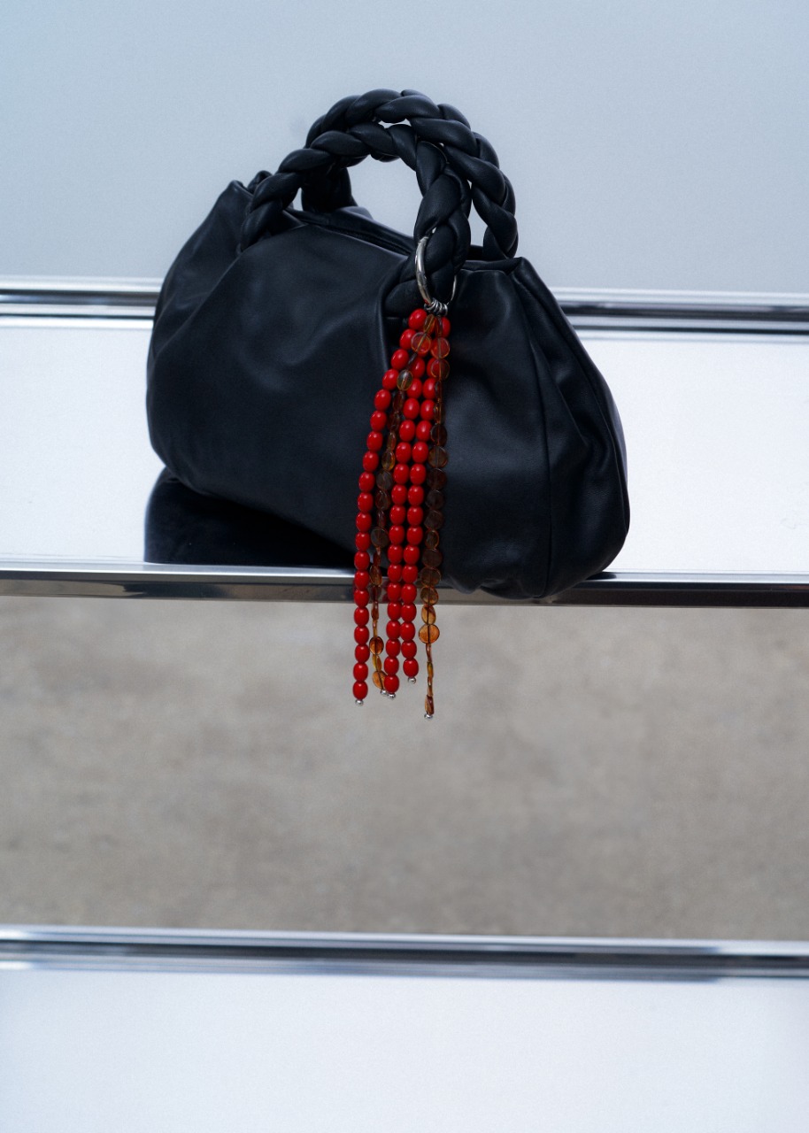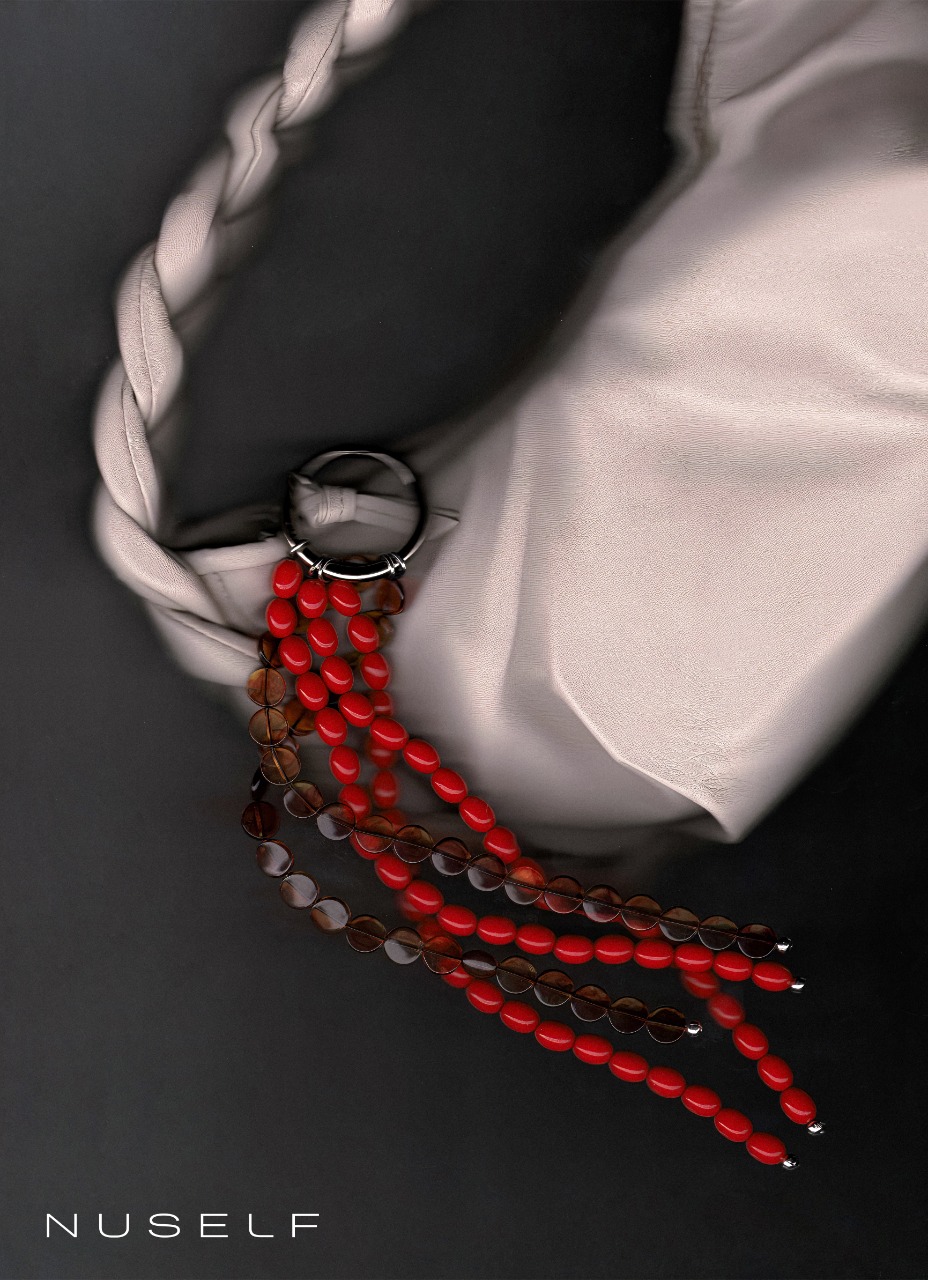 В преддверии двухлетия лайфстайл-платформа для шопинга и вдохновения NUSELF совместно с брендом Krivokoso представляет интерпретацию тренда на украшение сумок — аккуратное кольцо-карабин с фирменной гравировкой и нитями с красными и черепаховыми бусинами.