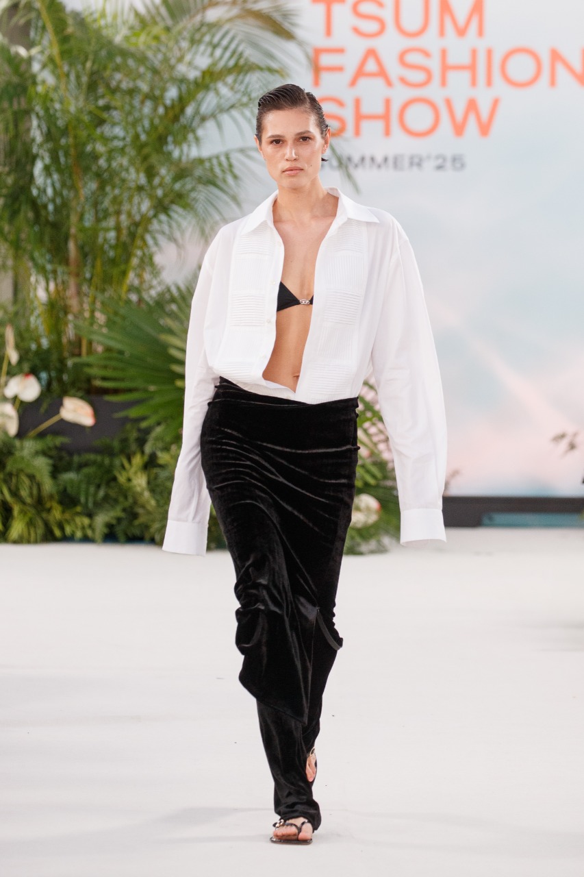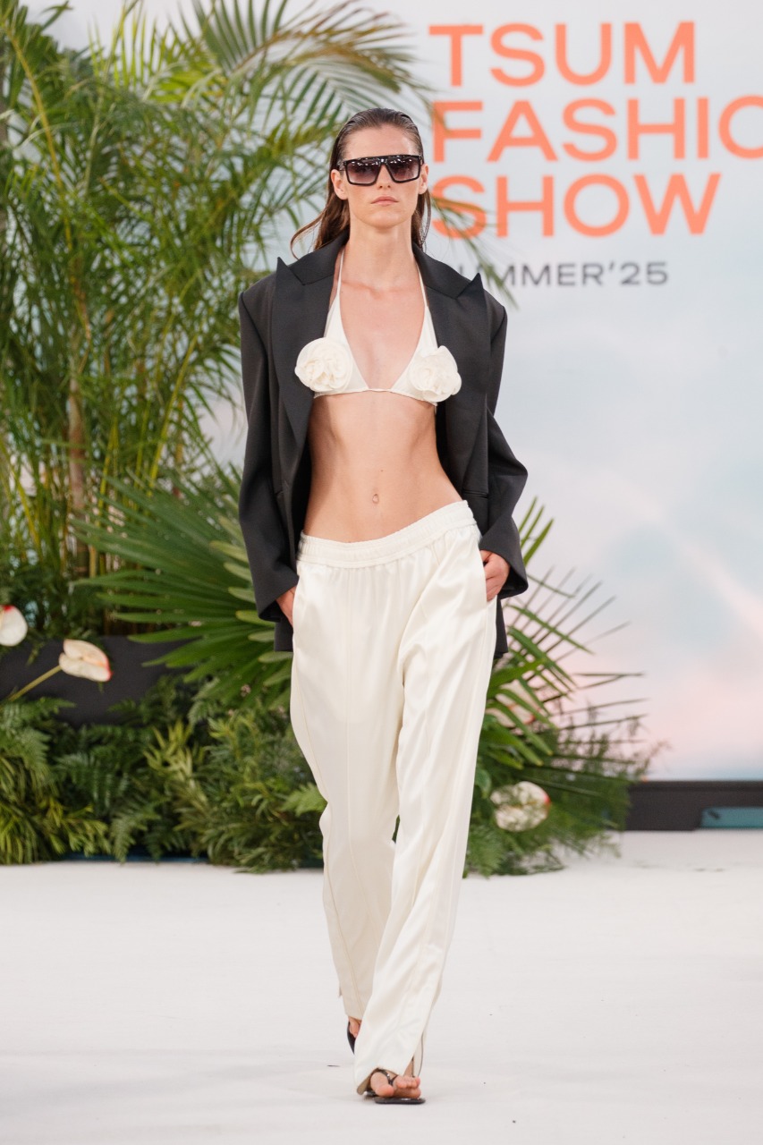 Гости TSUM Fashion Show увидели 77 женских и мужских луков, а лейтмотивом стал стиль marine chic. Модели вышли в образах нейтральных оттенков. Льняные и хлопковые пиджаки Jil Sander для женщин и Corneliani для мужчин накинули поверх рубашек Brunello Cucinelli, тонкого трикотажа MVST и шелковых топов.