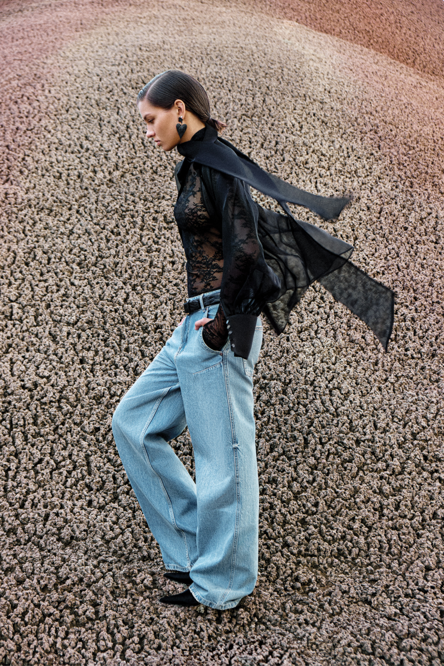Визитной карточкой коллекции стал алый пуховик оверсайз силуэта. В капсуле также можно найти платья-водолазки — от классических трикотажных до раскованных прозрачных с кружевными элементами. В дропе также представлены смокинги и другие элементы power-dressing гардероба.