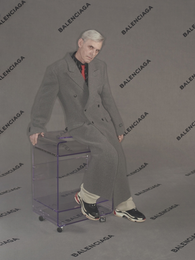 Balenciaga: мужская рекламная кампания с возрастной моделью и офисной мебелью