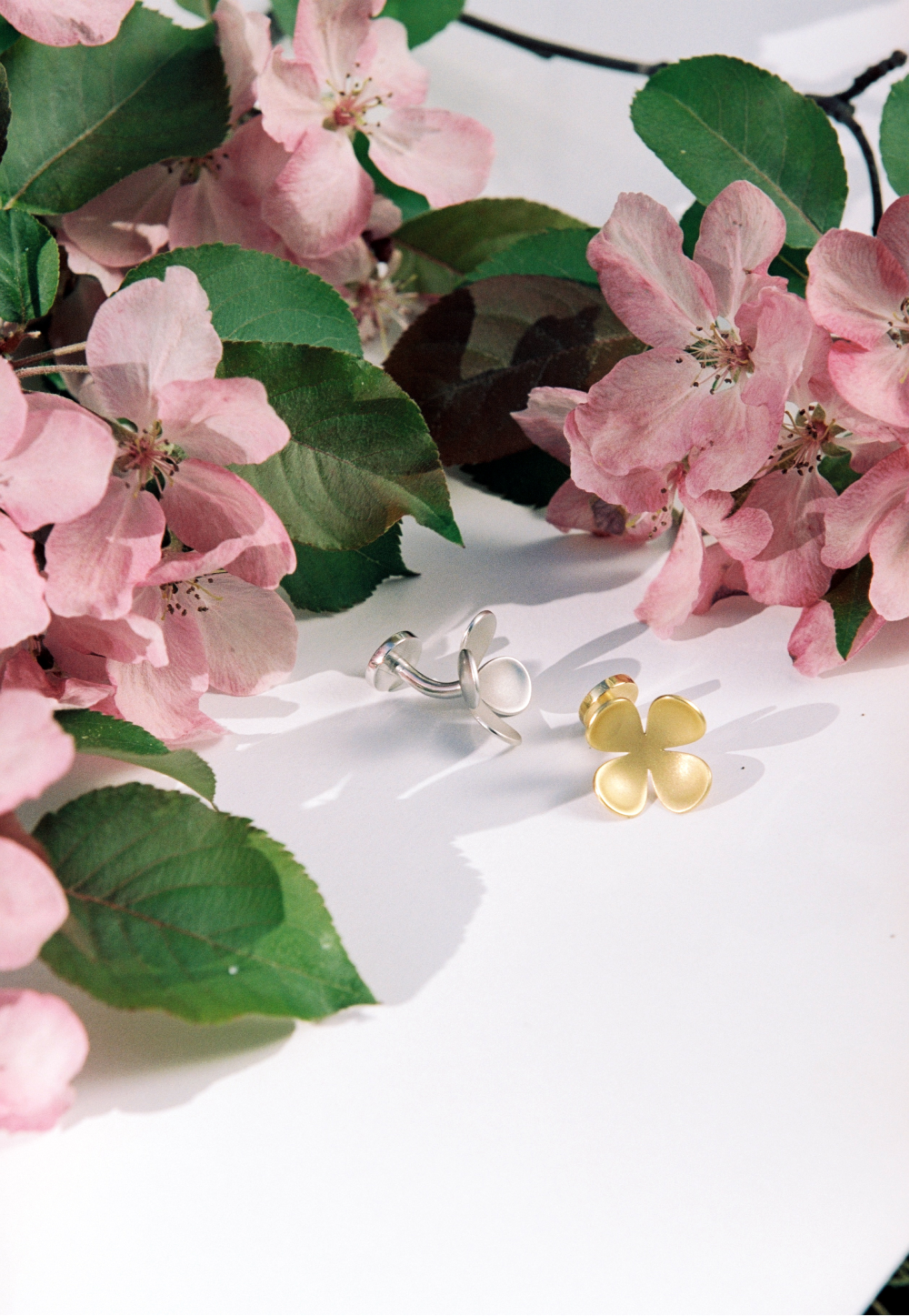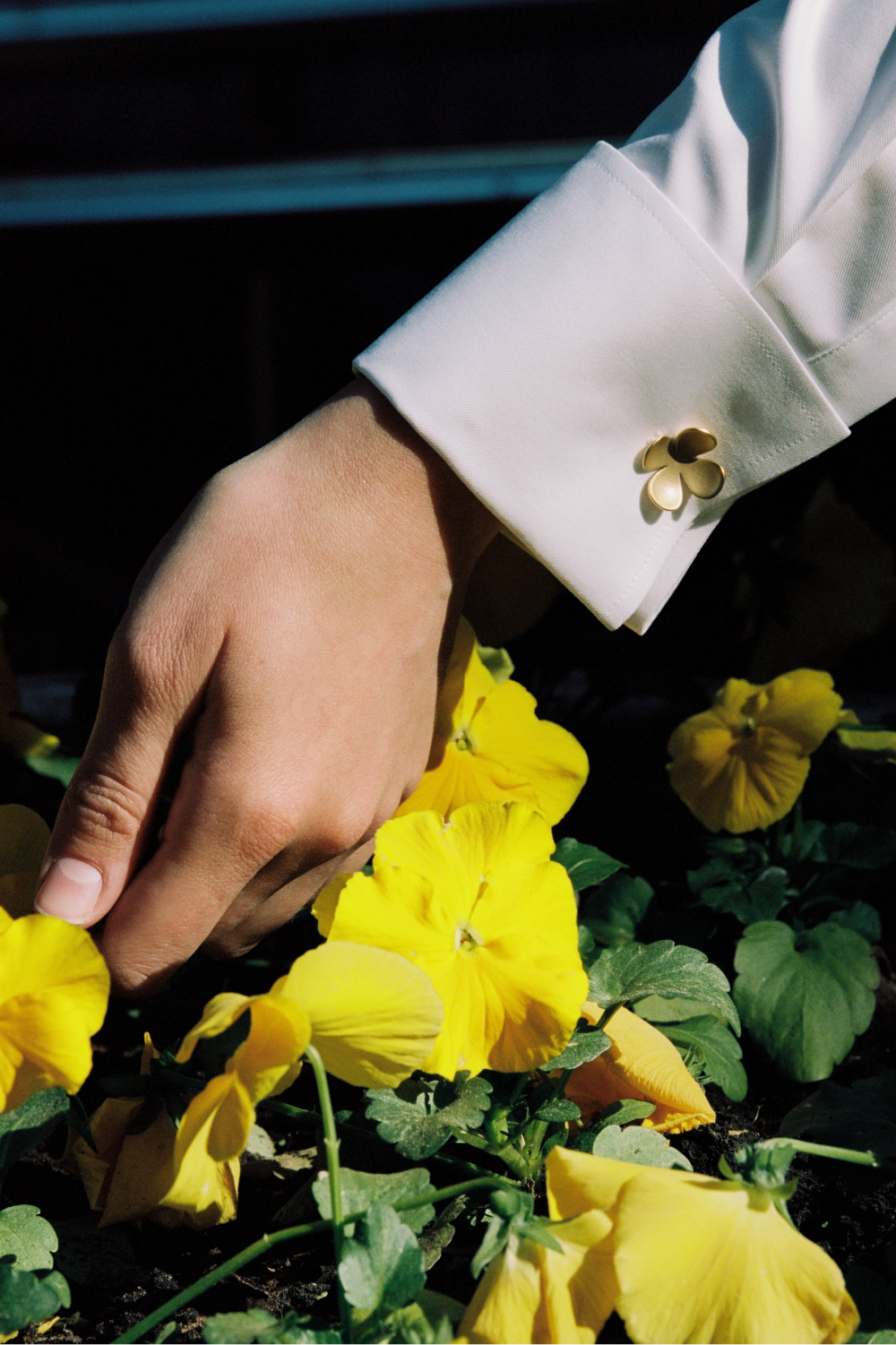 Таким образом, родилась идея коллаборации и форма — изящный цветок. Особенность цветка на запонках в том, что он полураскрытый, символизирует собой созидание и путь к расцвету. На обратной стороне расположены логотипы Razumno и alvaar. Запонки выполнены из латуни в двух цветах — золотом (верхний слой покрытия — золото 999 пробы) и серебряном (покрыты белым родием).