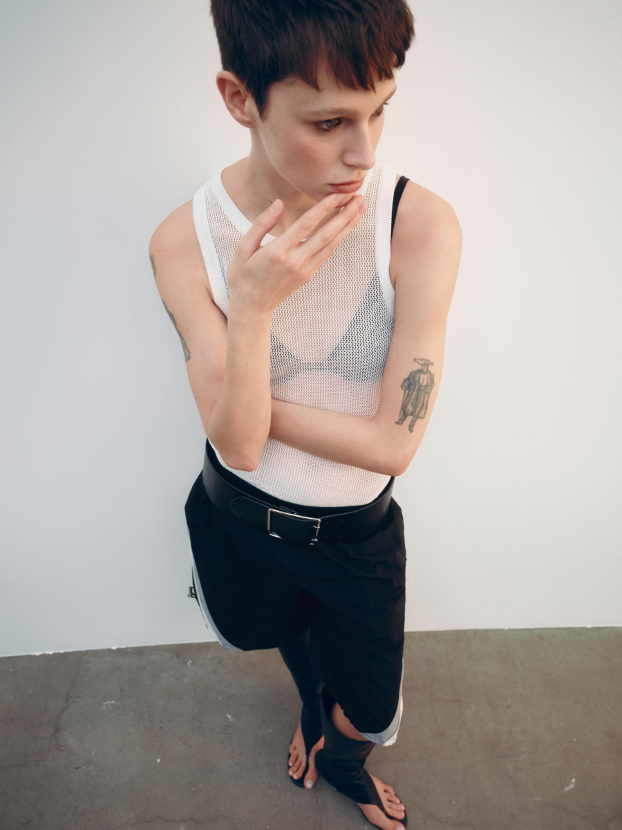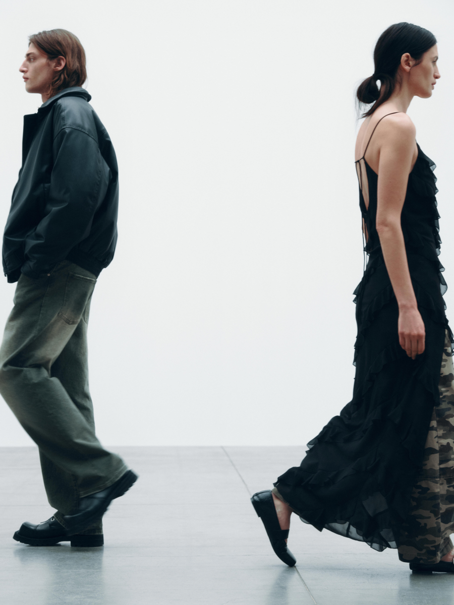 Главный референс — кампейны Comme Des Garçons девяностых и нулевых. Среди моделей — Яшиб Диенг, участвовавший в показе Balmain, Вероника Авдеева, ставшая лицом коллекции белья Befree Any Body, Варвара Васильева, которую можно было увидеть на показах Acne и Sportmax.