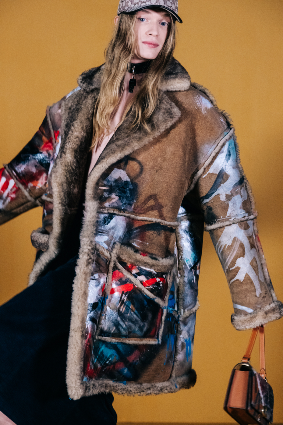 Герои съемки демонстрируют верхнюю одежду из овчины и кожи, кружевные и вязаные платья в ярких неоновых цветах, а также кожаные вещи, вдохновленные 70-ми. В коллекцию также вошли модели, созданные в сотрудничестве с дуэтом граффити-художников Mint + Serf. Они передают энергию и атмосферу Нью-Йорка.
