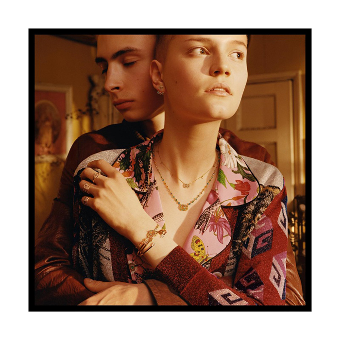Gucci представил рекламную кампанию новой ювелирной коллекции. Снимки с Линой Хосс и другими моделями сделал фотограф Колин Догсон.