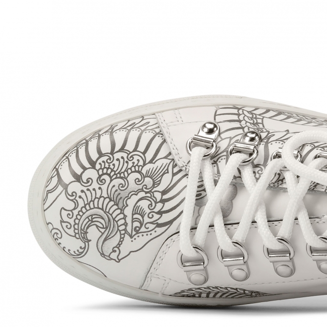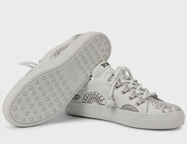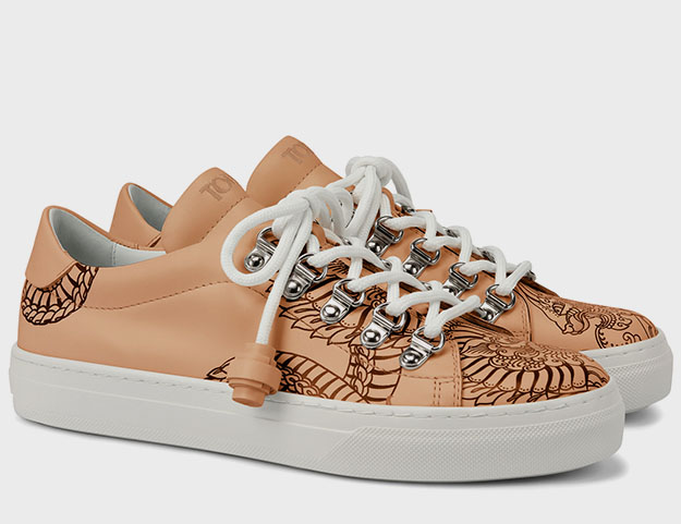 В начале марта парижский магазин Tod's на Сент-Оноре на время превратился в тату-студию. Гости бутика могли наблюдать за работой художницы Сайры Ханджан, которая наносила татуировки с изображениями львов и драконов на несколько новую и необычную для себя поверхность. На этот раз витиеватые узоры в этническом стиле украсили сумки и кожаные мокасины, а не тела ее смелых клиентов. Смотреть, как Сайра работает с иголкой и краской, хочется бесконечно – благо такая возможность есть, выше мы специально прикрепили видео.