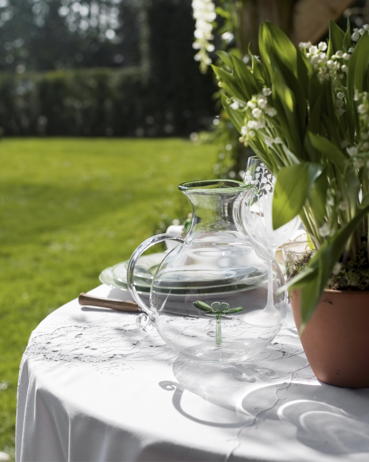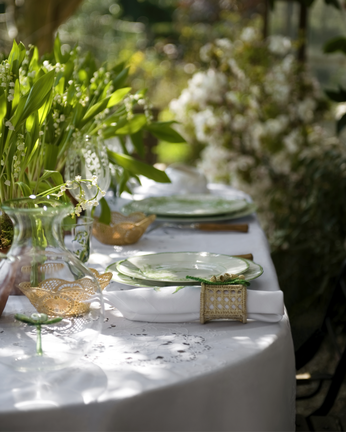 Dior Maison также обновил коллекцию посуды of the Valley. В нее традиционно вошли тарелки из белоснежного лиможского фарфора, бокалы на длинных ножках, графины, стаканы, кружки и салфетки, украшенные изображениями ландышей.