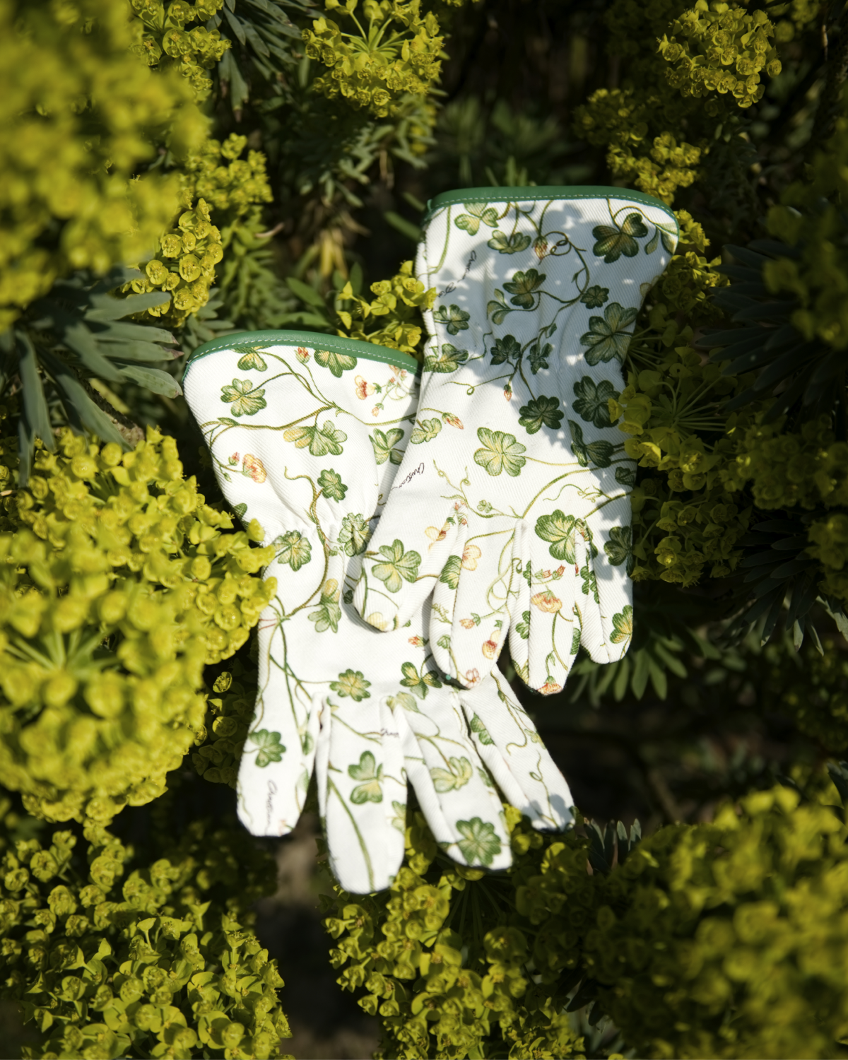 Коллекция также отдает дань уважения наследию Кристиана Диора и его любви к цветам. В капсулу вошли фартук, перчатки, садовые инструменты и горшки для растений. На все предметы из коллекции поместили флористические принты с изображением трилистника. Цветовую палитру составили белый, ярко-зеленый и бежевый оттенки.