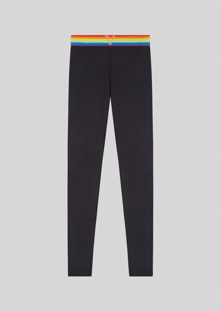 Купальники, легинсы и носки с радужными полосками и логотипами бренда