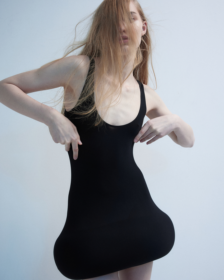 С первых сезонов визитной карточкой Лантинка стали смелые эксперименты с формами и телесные модификации, отсылающие к архивным работам Рей Кавакубо и Жан-Поля Готье. Узнать вещи Duran Lantink можно по объемным округлым накладкам, которые гипертрофируют естественные изгибы тела.