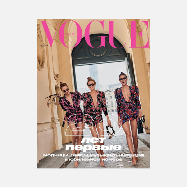 Российский Vogue опубликовал в своем инстаграме обложку юбилейного сентябрьского номера журнала. Героинями выпуска, посвященного 20-летию издания, стали Наталья Водянова, Наташа Поли и Ирина Шейк. Они позируют втроем в блестящих мини-платьях с цветочным узором из осенне-зимней коллекции Saint Laurent и солнечных очках Prada. Стилизовала съемку Ольга Дунина, а автором фото стал итальянец Джампаоло Сгура, постоянно сотрудничающий с разными версиями Vogue и GQ. Купить номер можно будет с 15 августа.