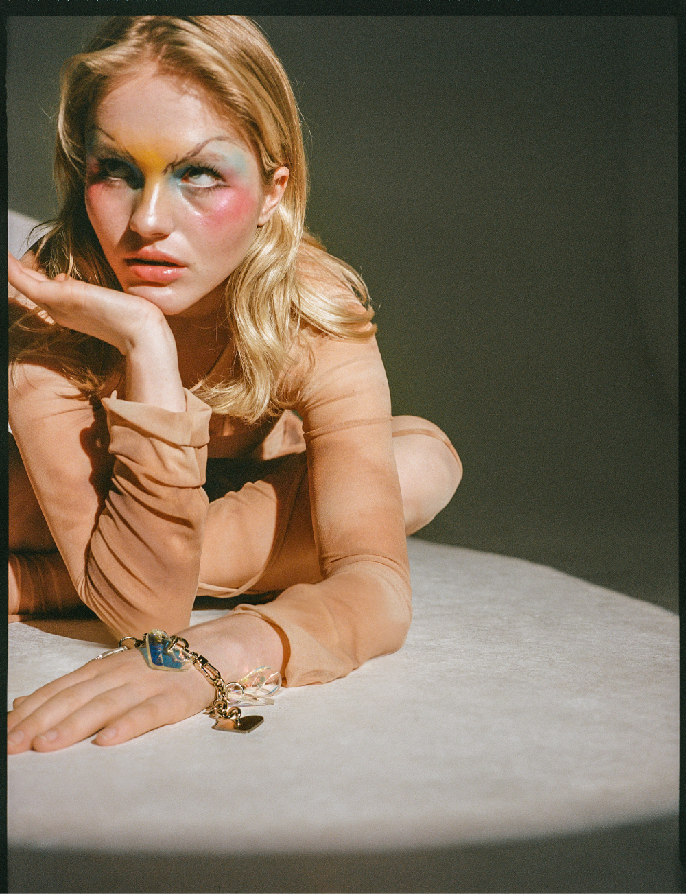 Российский бренд Omut представил новогоднюю коллекцию украшений под названием «Epic Night». В нее вошли чокер, браслет, топ, сумочка, чепчик и моносерьга в оттенках от кристально-голубого до апельсинового и розового в одном изделии.