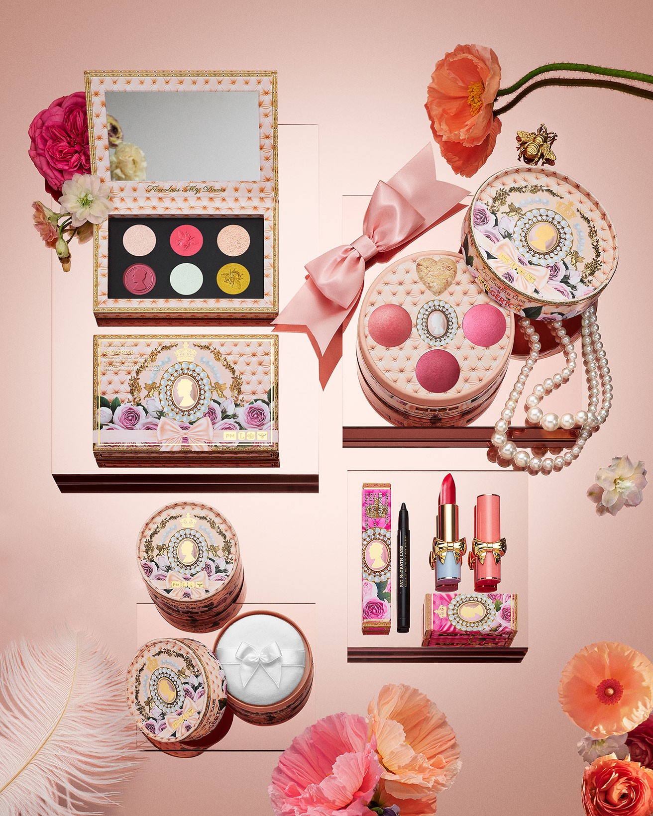 В капсуле представлены три оттенка хайлайтеров, палетка теней Belle of the Ball в шести цветах, включая «розовое золото», сливовый и пионово-розовый. Их можно использовать на любой части лица — как румяна или хайлайтер. Палетку дополняет черная подводка для глаз и губная помада в семи вариантах розового. Линейка также включает блеск для тела в комплекте с пуховкой.