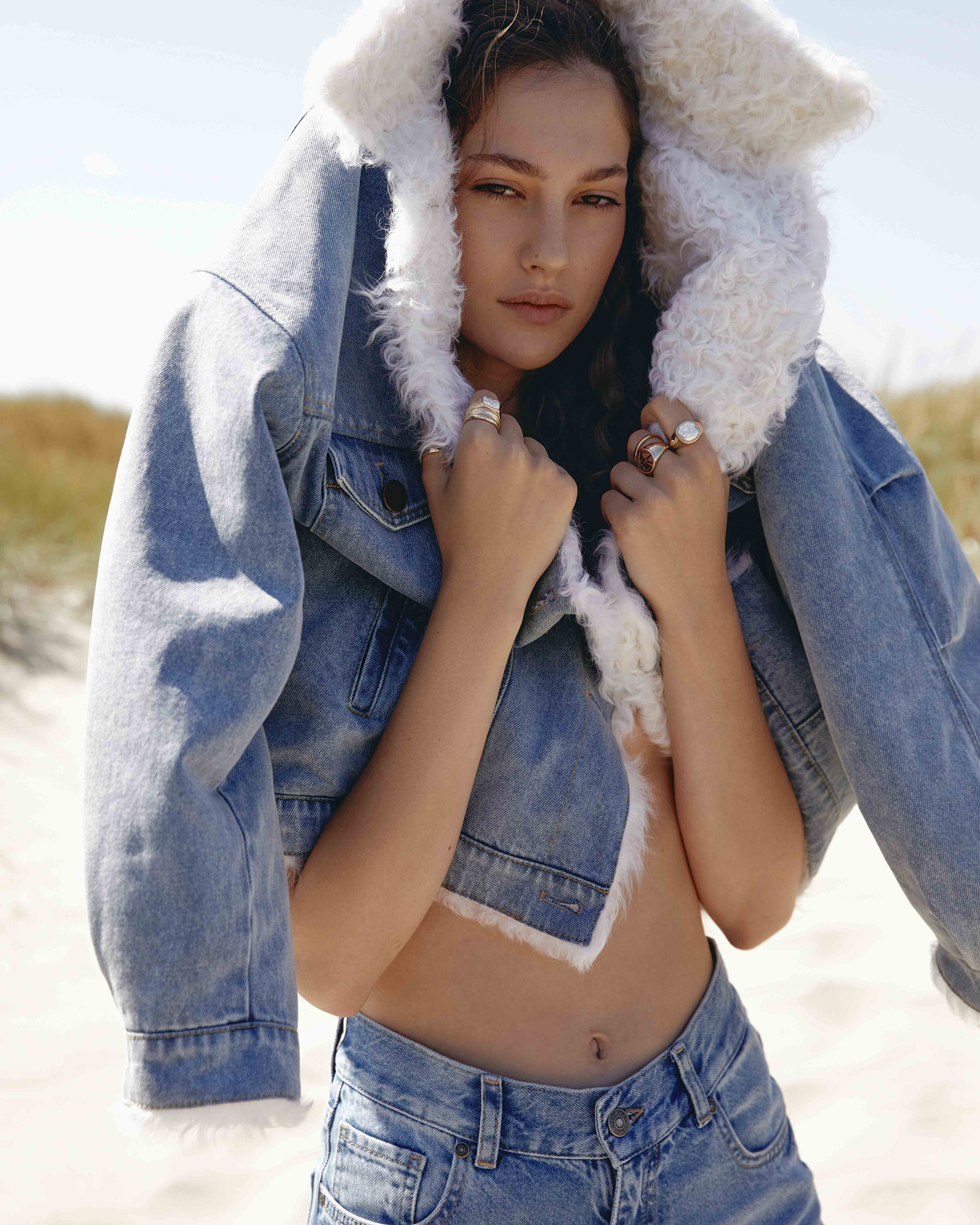 В коллекцию вошли трикотажные жилеты и свитеры, куртки из денима c подкладкой из овчины, шерстяные пальто, жакеты, брюки и юбки из актуальной кожи, дубленки, а также панамы и сумки-шоперы из экомеха. Палитру составили нейтральные природные оттенки: кремовый, верблюжий, рыжевато-коричневый, серый, темно-синий.