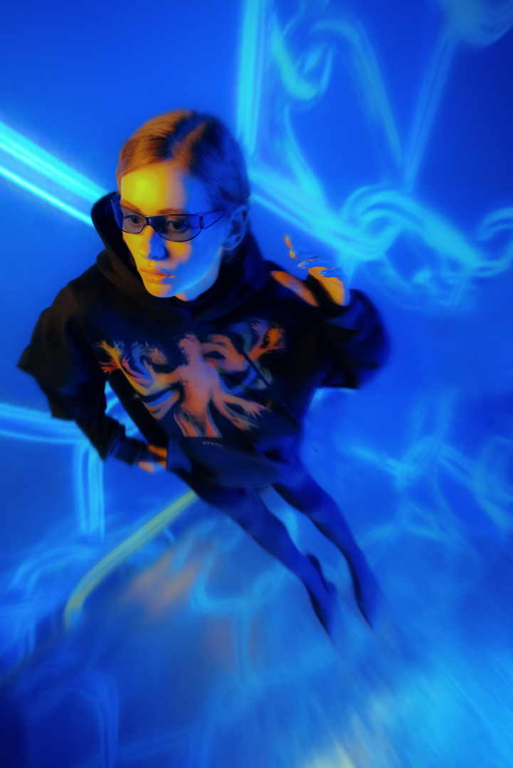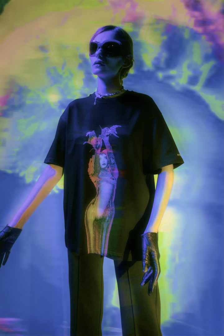 Дизайнер бренда Андрей Мардо вдохновился клипом Луны и создал по его мотивам графические работы. Также в коллекции можно найти черное боди с вырезом на груди, полупрозрачные комбинезоны и рубашки, покрытые принтом в виде разноцветных разводов.