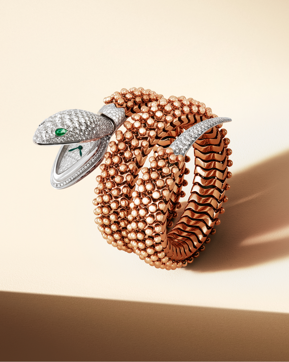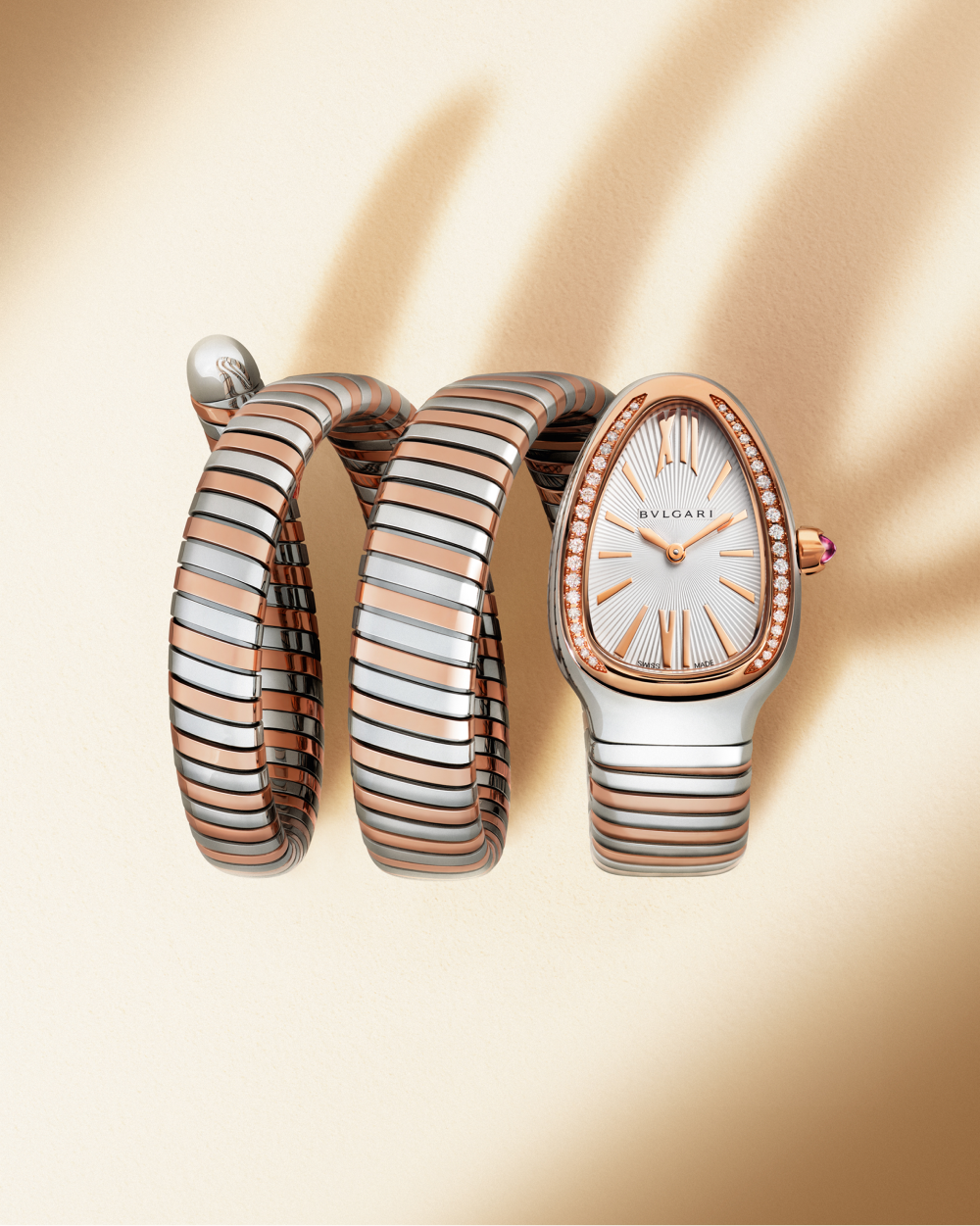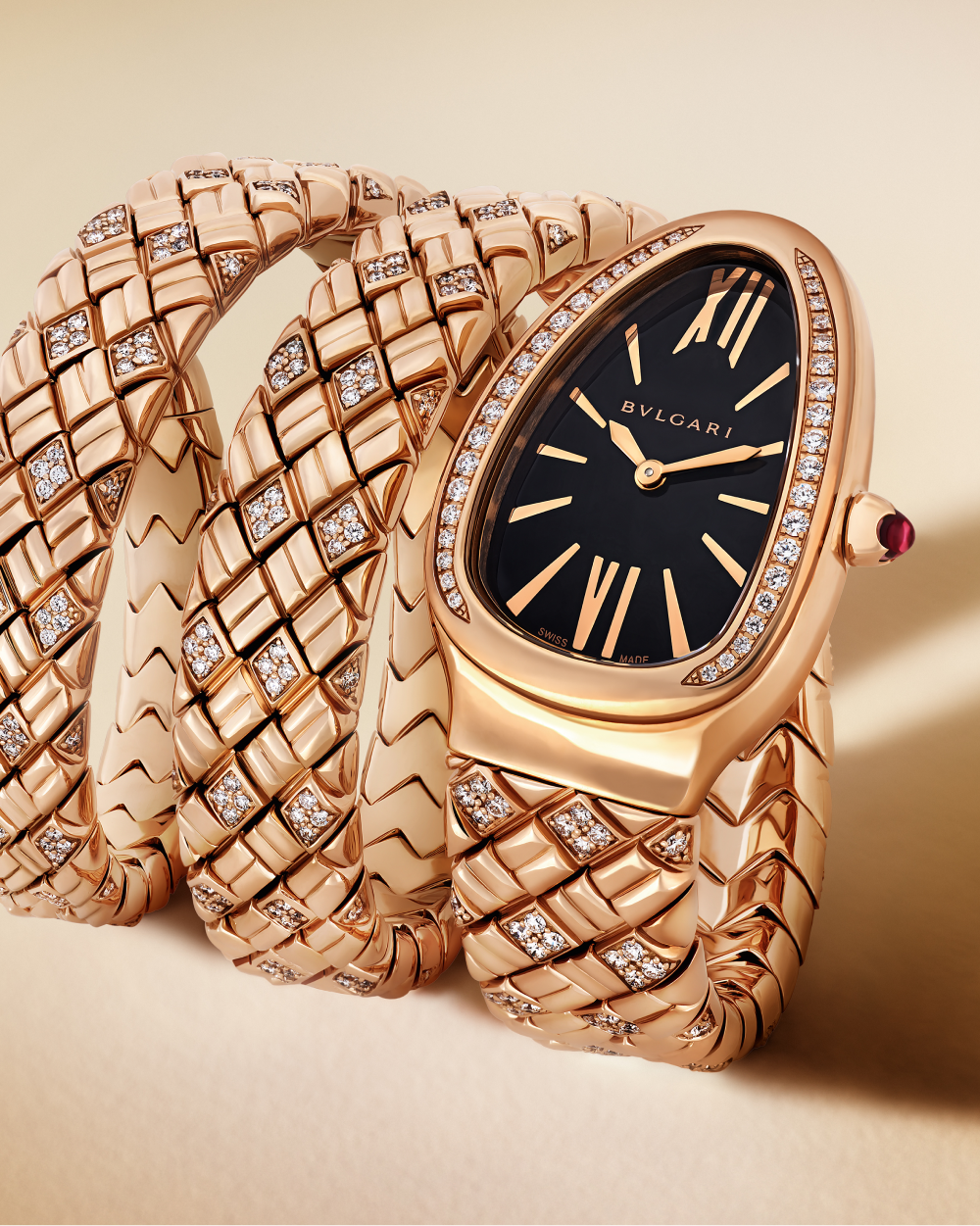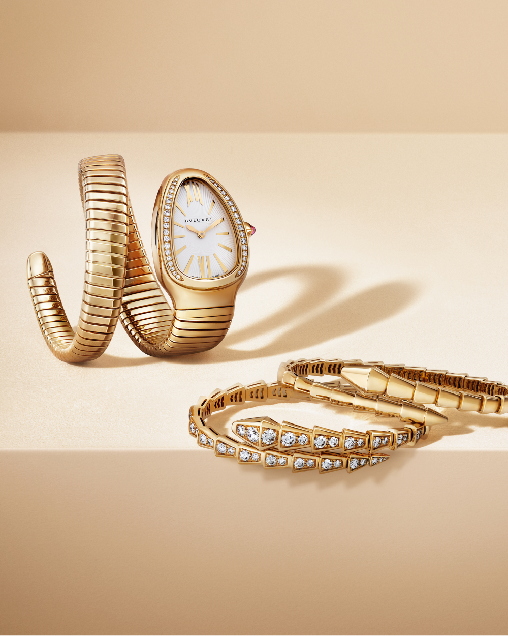 Змея — один из самых знаковых мотивов Bvlgari. С момента своего первого появления в виде элегантного браслета-часов Tubogas в 1948 году она неоднократно мелькала у самых известных женщин в мире. Среди них — актриса Элизабет Тейлор, которая влюбилась в римский ювелирный бренд во время съемок фильма «Клеопатра» вместе с Ричардом Бертоном в 1962 году. Именно здесь дебютировал браслет с двойной спиралью в виде змеи.