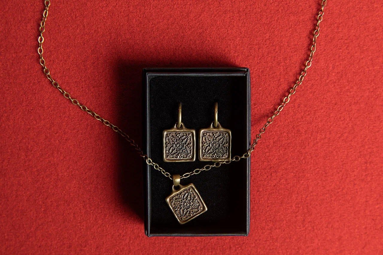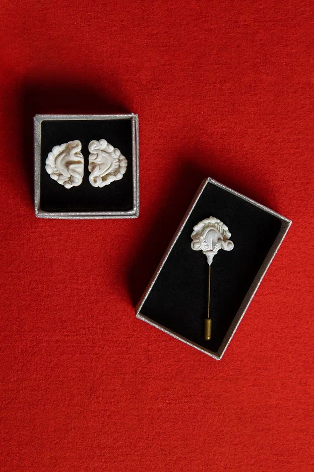 Терракотовые изразцы XVII века стали источником вдохновения для дизайнера Анны Королевой. В коллекцию «Изразцы» входят серьги-колечки со съемными подвесками и кулоны, выполненные из латуни. Миниатюрные изразцы повторяют сюжеты предметов из фондов: первый дизайн инспирирован изразцом с растительным орнаментом или травным узором, другой — изразцом со львом, который с древних пор считается символом божественной власти и царского достоинства.