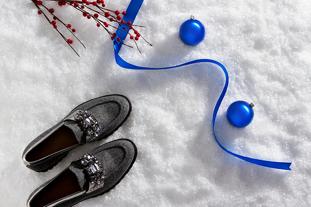 Специально к праздничному сезону в этом году магазин NO ONE собрал новогоднюю коллекцию обуви и аксессуаров, которые призваны дополнить любой новогодний образ и сделать его еще ярче. Например, бархатные лодочки и босоножки Ballin или Fabi смогут дополнить вечернее платье, а туфли в пайетках и блестках или лоферы с вышивкой сделают даже минималистичный костюм новогодним. В коллекцию также вошли аксессуары от таких брендов, как Vivienne Westwood, Karl Lagerfeld, Via Repubblica, и многих других.
