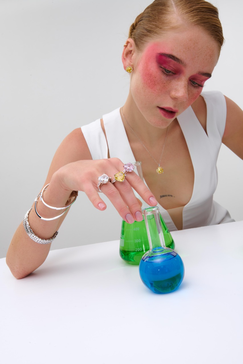 В лабораториях Panacea разрабатывают актуальные дизайнерские направления — от futurism до liquid silver, от boho chic до dark fashion. Эксклюзив бренда — сочетания серебра с лабораторными бриллиантами, а также цветными драгоценными и ювелирными камнями, включая редкие и необычные, такие как александрит, иолит, хромдиопсид, празиолит. Здесь соединяют привычные материалы в необычных связях и формулах: рубин с серебром, эмаль с лабораторным бриллиантом, «плавят» металл и «замораживают» камни, используют инновационную нанокерамику.