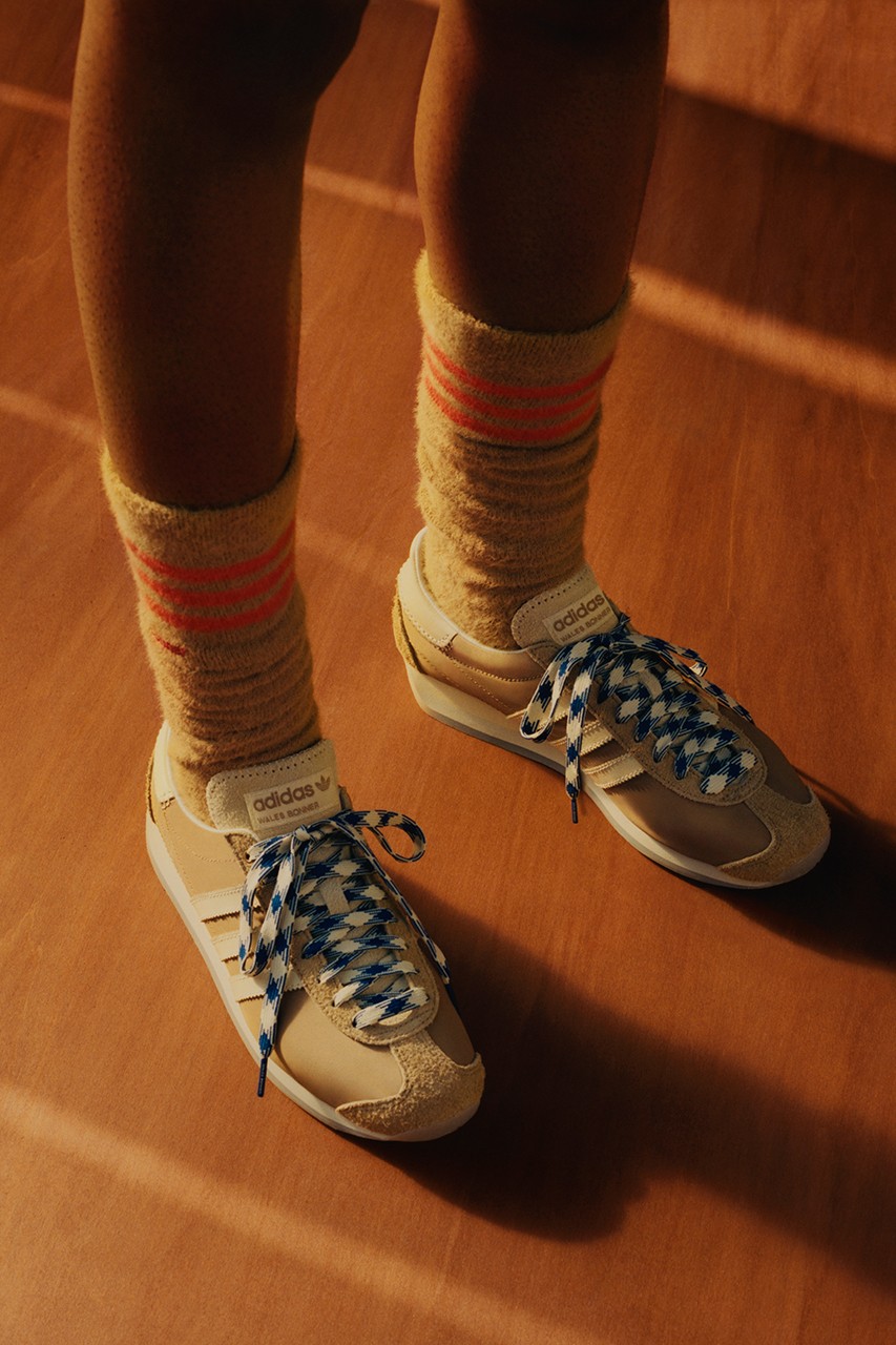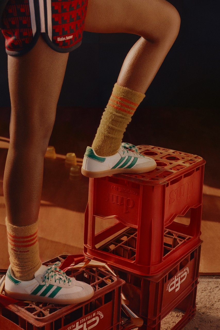 Кроме того, бренды возродили кроссовки adidas Country и Wales Bonner Samba. Культовые модели представлены в яркой цветовой палитре — желтом, красном, зеленый и бледно-розовом оттенках.