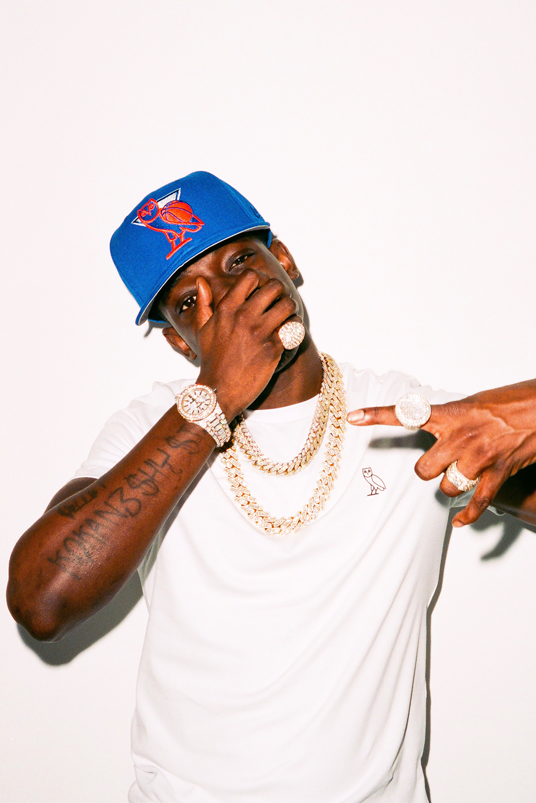 В коллекцию также вошла бейсболка OVO x Knicks New Era с фирменным логотипом бренда в виде совы, а также баскетбольным мячом в классических синем, оранжевом и белом цветах команды. Помимо того, линейке представлены куртки в университетском стиле, футболки, брюки, шорты и джинсы.