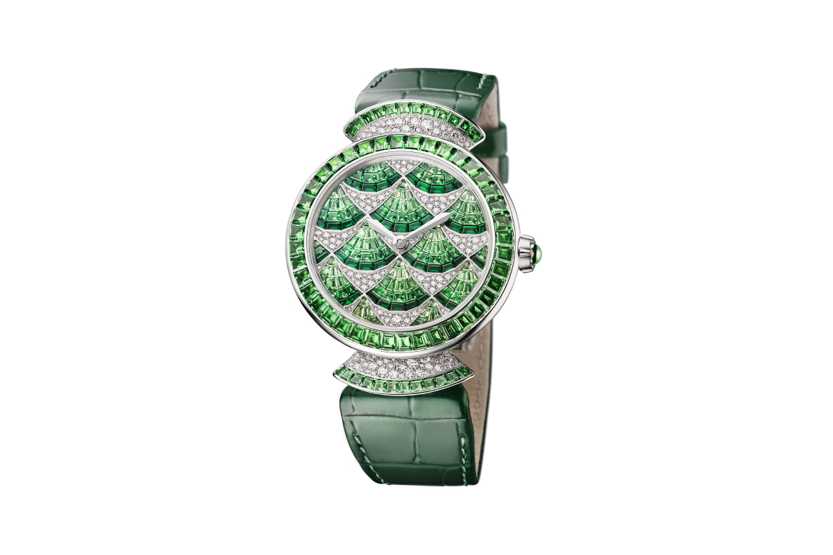 Посетители Geneva Watch Days смогли увидеть новинки для женщин — Divas' Dream с циферблатом из зеленого малахита или синего лазурита, корпусом из розового золота и браслетом из веерообразных звеньев, Divina Mosaica с минутным репетиром и инкрустированным бриллиантами циферблатом.