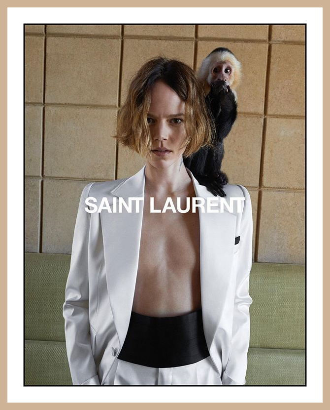 Фрея Беха позирует с обезьянкой в кампании Saint Laurent