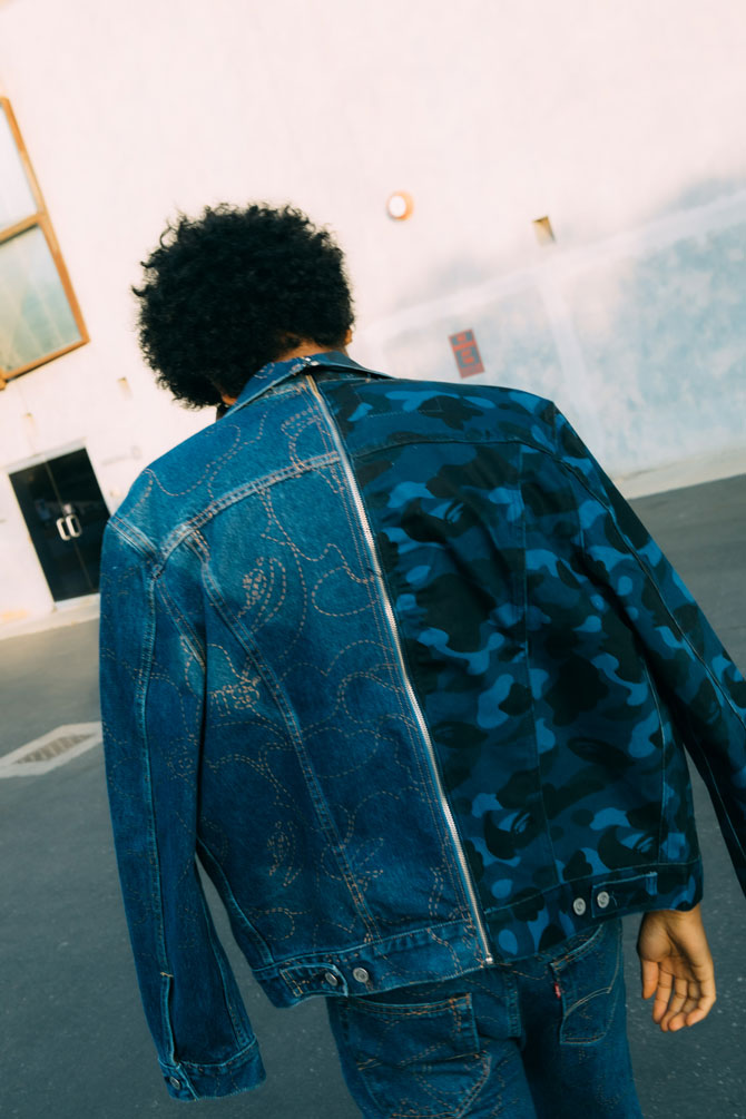 В день старта продаж в магазины поступят пять моделей куртки Levi’s x Bape. Каждая куртка будет иметь тот же принцип комбинирования, как и тракеры дропов в Дубае и Майами.