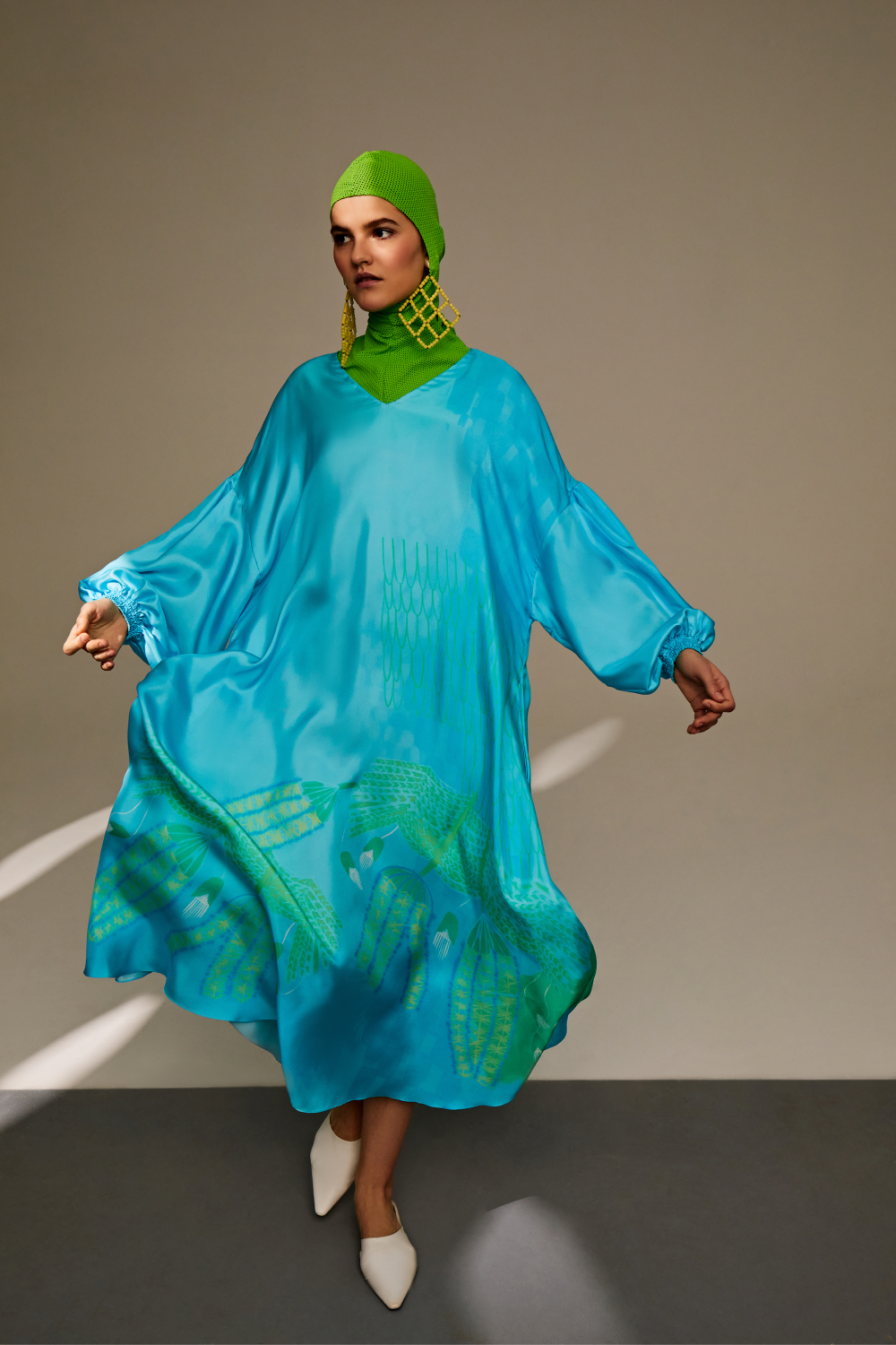 Российский бренд Alena Akhmadullina представил специальную коллекцию Middle East Capsule, созданную с учетом стилистических предпочтений клиенток с Ближнего Востока. Капсула состоит из восьми платьев свободных летящих силуэтов из разных видов натурального шелка (тонкий шифон, средней плотности и плотный немнущийся).