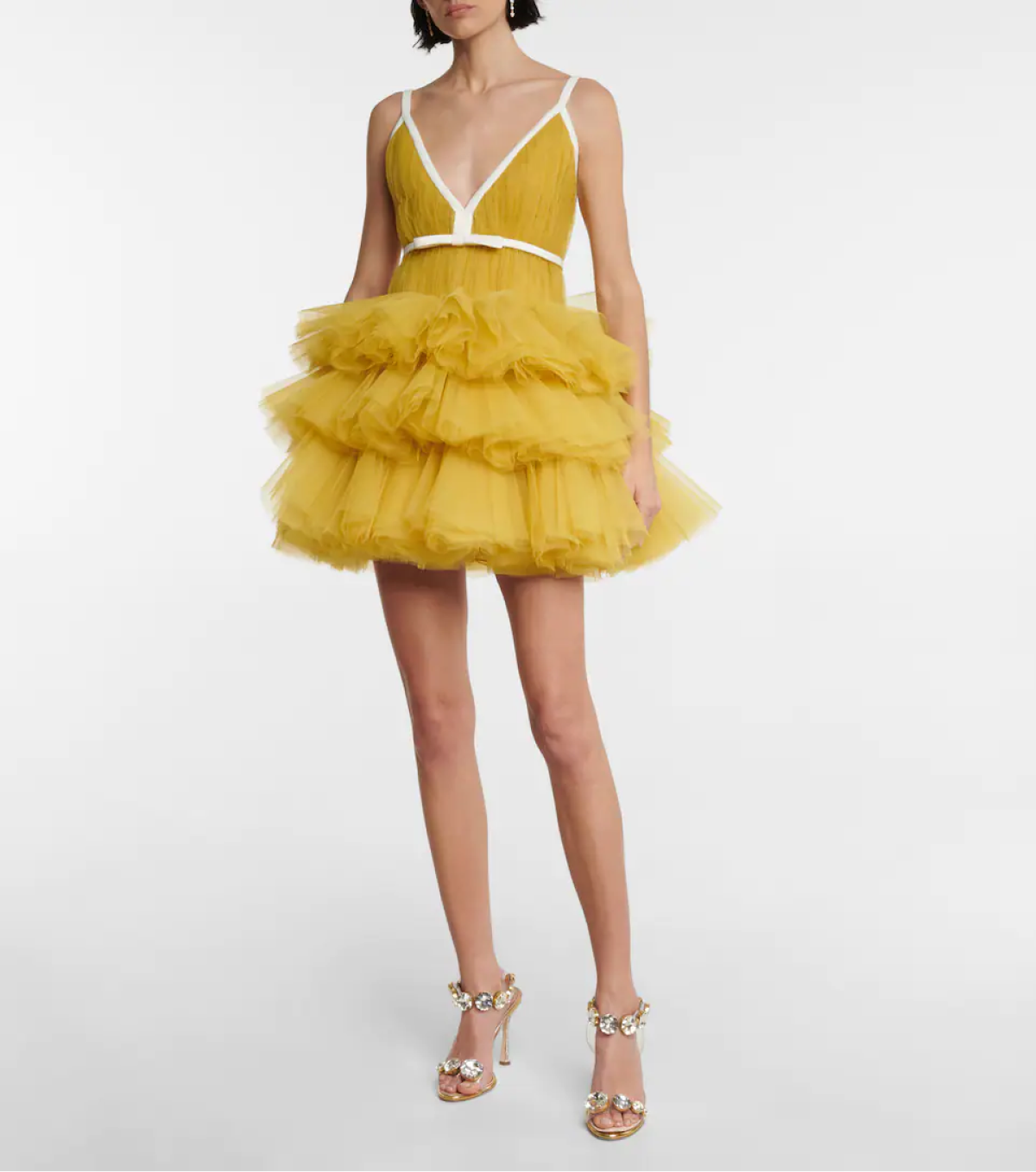 В коллекции можно найти легкие шифоновые платья с фирменными оборками и рюшами