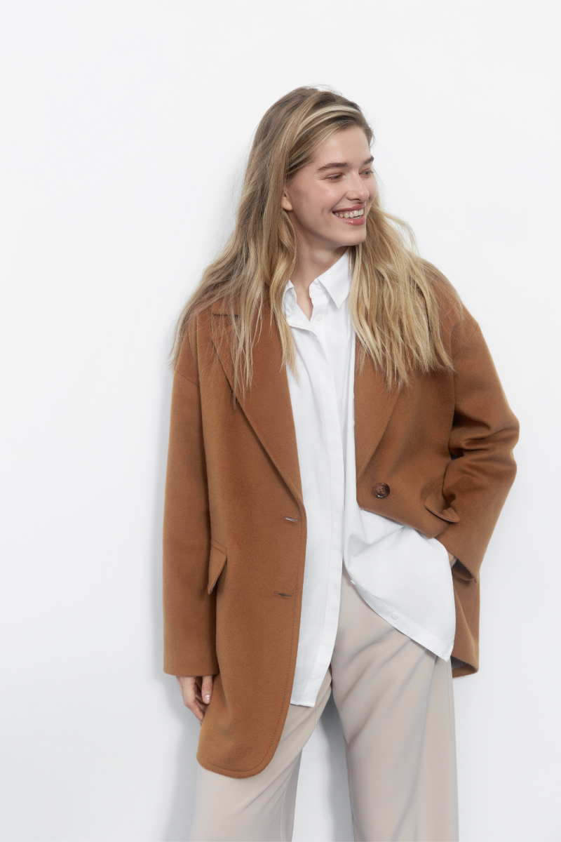 Наряду с базовыми моделями в линию верхней одежды вошли пальто-пиджаки короткой длины. Однобортный силуэт оверсайз-кроя дополняют накладные карманы и широкие лацканы. Новинка представлена в трех базовых расцветках: черном, сером и карамельном оттенке. Благодаря смесовому составу с высоким содержанием шерсти (60%) во всех пальто Arive будет тепло даже поздней осенью.