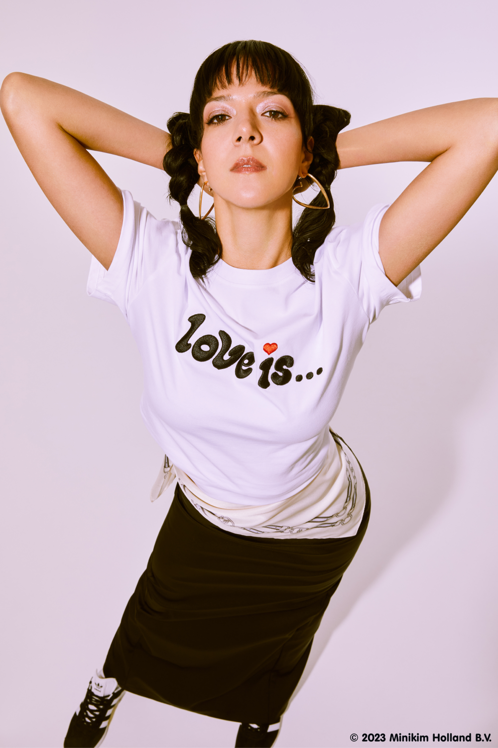 Накануне Дня святого Валентина Love Republic выпустил коллаборацию с брендом Love is… В коллекцию вошли футболки, свитшоты и джемперы с логотипом и архивными принтами, созданными на основе рисунков художницы Ким Гроув. Бумажки с трогательными сюжетами были знаком внимания, который Ким оказывала своему жениху Роберто Касали.