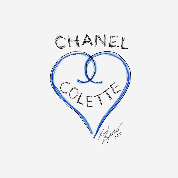 Для Colette Chanel сделал лимитированную коллекцию футболок — дизайн Лагерфельд разработал лично. Специальный саундтрек для магазина записал Мишель Гаубер — диджей известен по музыкальному сопровождению к последним шоу Chanel.
