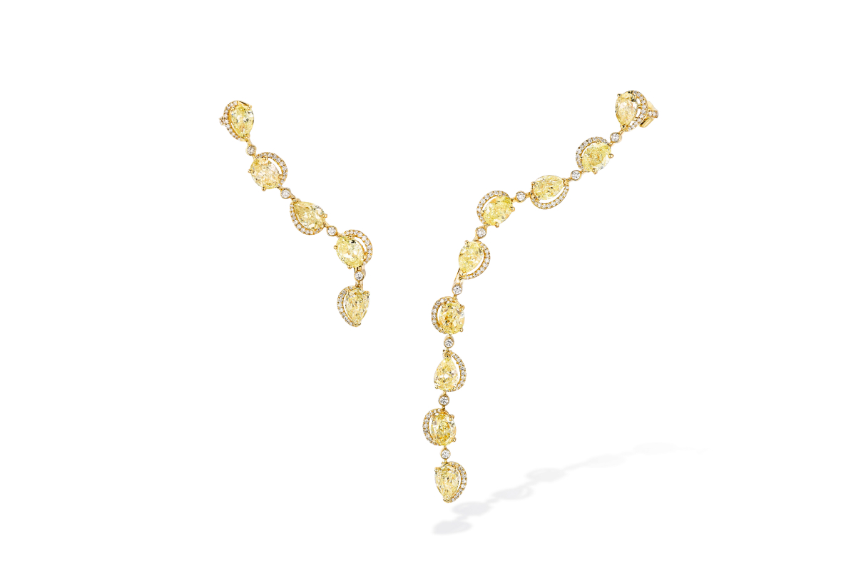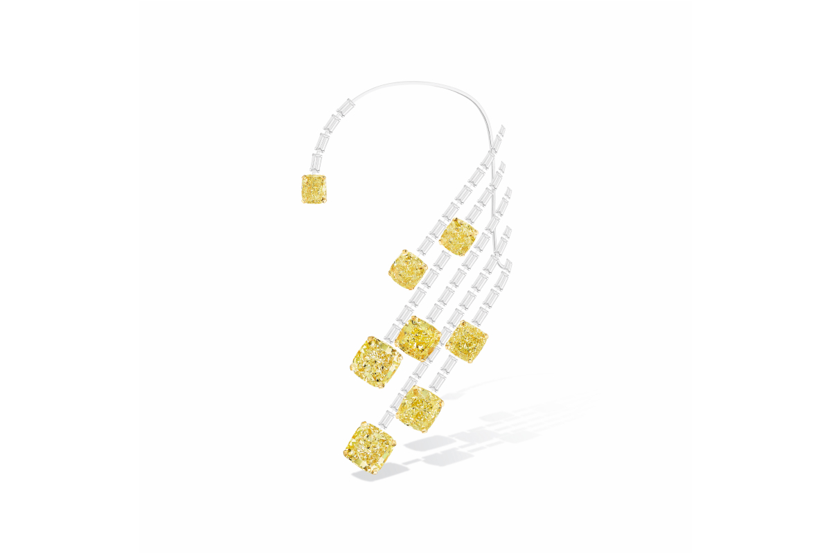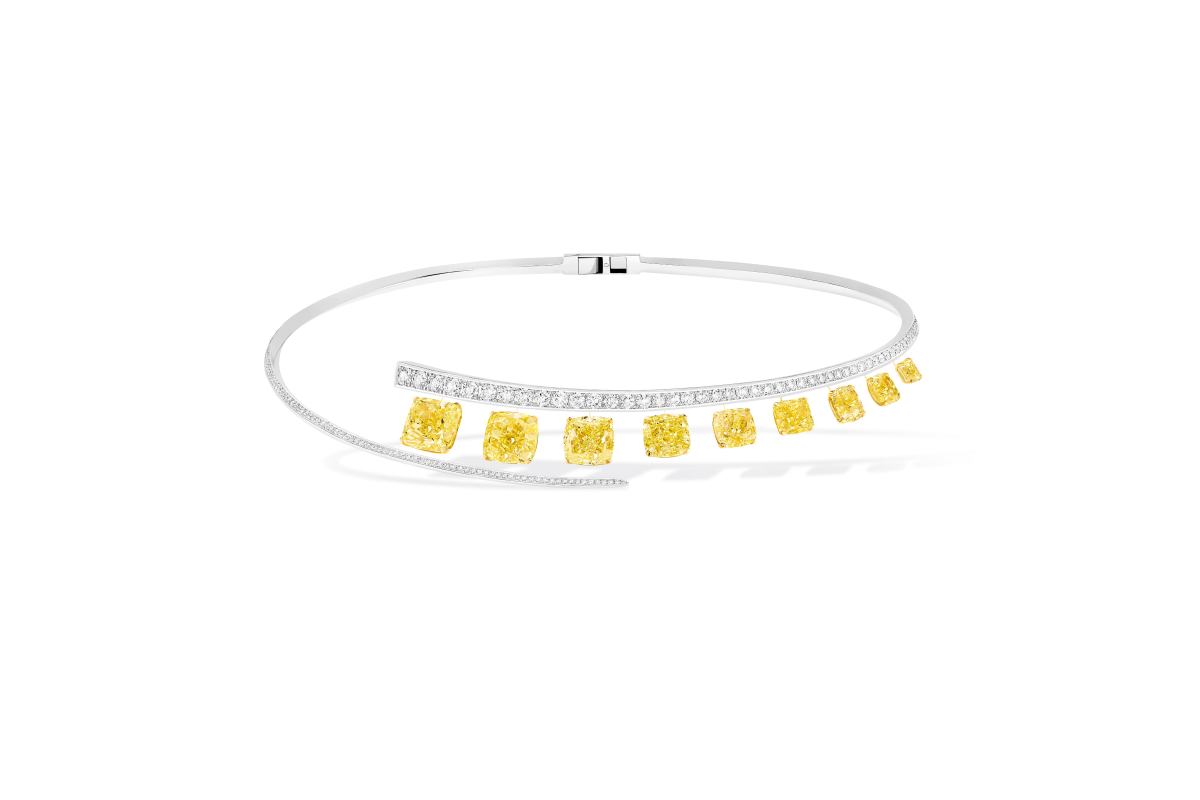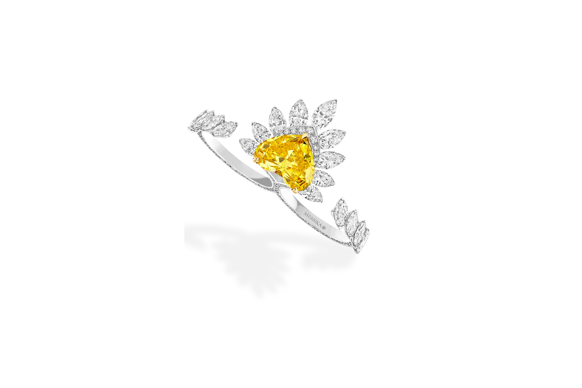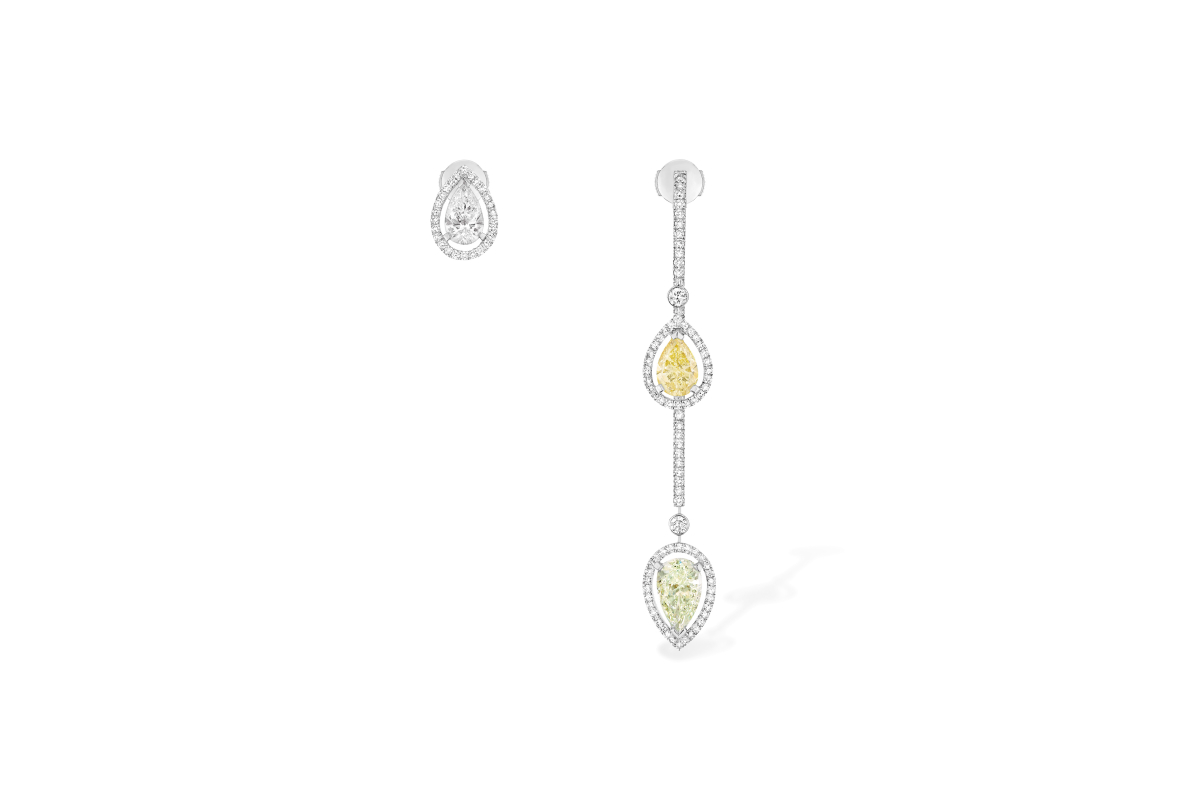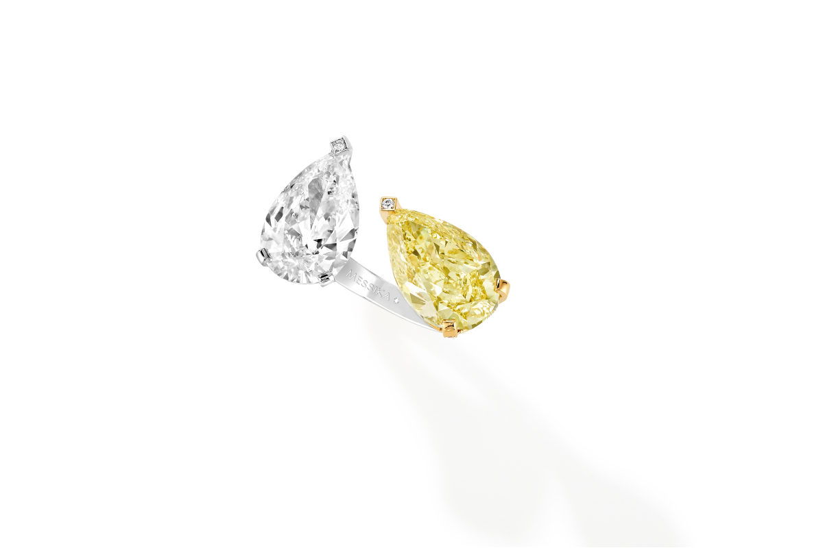 Ювелирный бренд Messika выпустил коллекцию украшений с цветными бриллиантами. В нее вошли кольца, браслеты, серьги и колье из золота с желтыми, розовыми и голубыми камнями разной огранки — грушевидной, «кушон» и в форме сердца. Их в изделиях дополняют россыпи более мелких прозрачных бриллиантов.