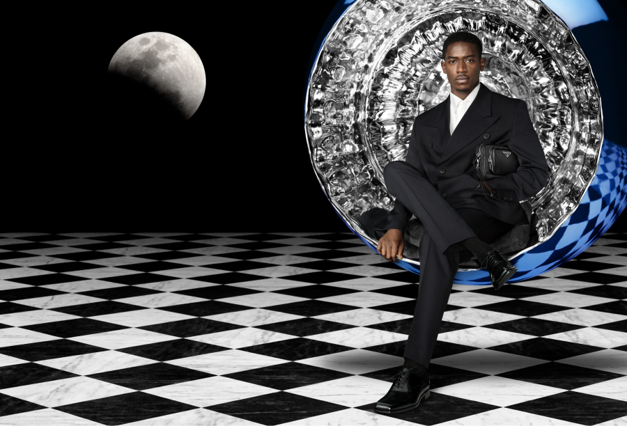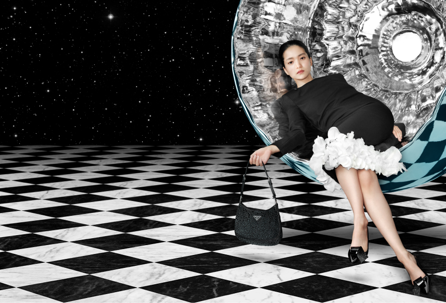 Герои кампании позируют на фоне звездного неба и пола в виде шахматной доски, который является отсылкой к интерьеру легендарного бутика Prada в миланской Галерее Виктора Эммануила II. Звезды продемонстрировали праздничную селекцию одежды и аксессуаров.