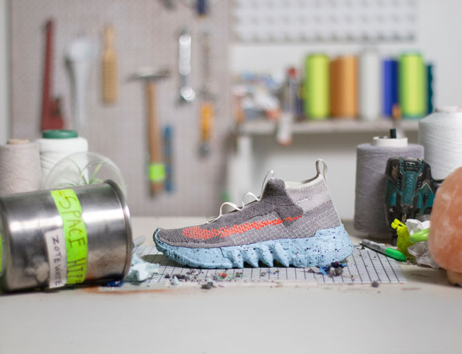 Nike представил инновационную коллекцию кроссовок Space Hippie, созданная из переработанных производственных и потребительских отходов. В нее вошли четыре модели с радикальным и в то же время экологичным дизайном.