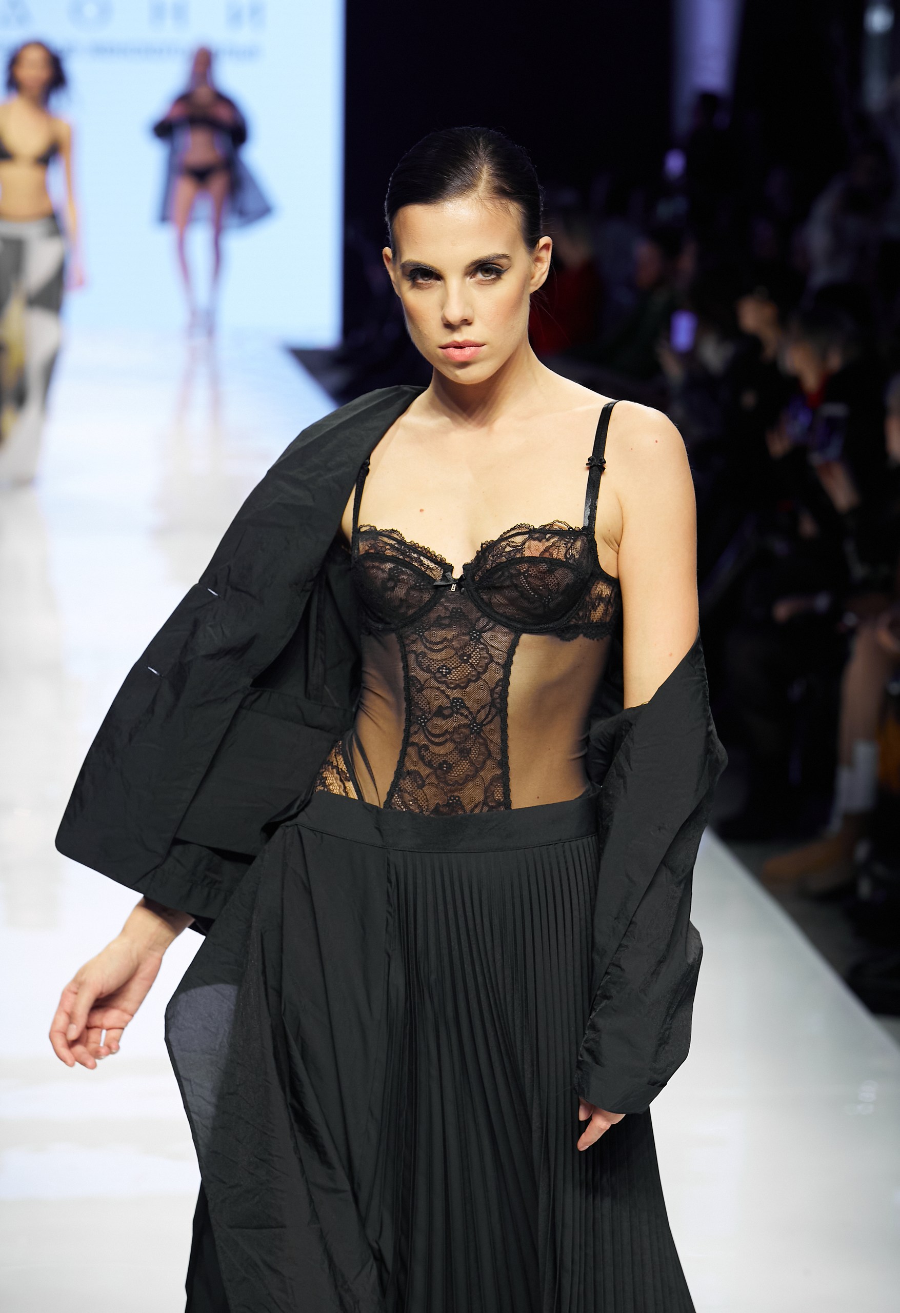 На показе белье стало полноценной частью модного образа: актуальные сочетания боди и бра из французского кружева, шелковых топов и сорочек от брендов Lise Charmel, Chantelle X, LIVY, marlies|dekkers, I.D. Sarrieri, Simone Pérèle с повседневными и вечерними образами от брендов одежды Sarah Pacini, Rocco Ragni, Daniela Drei, Easy Peserico, HIGH, Gentryportofino и Caterina Leman.