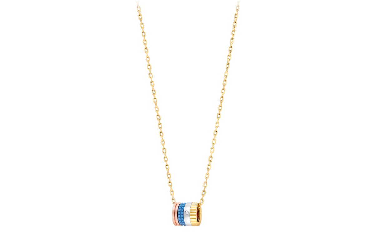 В коллекцию Quatre Blue вошли подвеска с одним бриллиантом круглой огранки и цепочкой из желтого золота, колье-галстук, которое можно стилизовать несколькими способами, и кольцо.