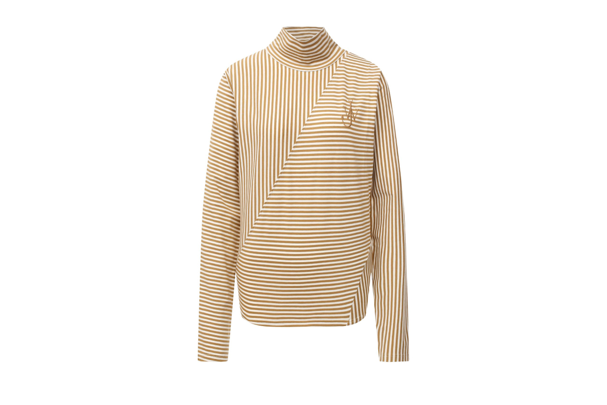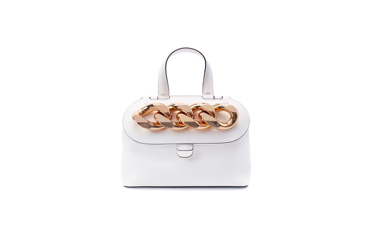 В contemporary-пространстве на четвертом этаже ЦУМа представлена новая женская осенне-зимняя коллекция J.W. Anderson. В ассортименте — пальто архитектурного кроя, тренч-кейп, шелковые платья, свитеры с вышитым на груди логотипом бренда Джонатана Андерсона, полосатые лонгсливы, фетровые мюли, лоферы с цепочкой, туфли с металлическим анклетом, украшенным кристаллами, сумки Punch в виде боксерской груши и Lid c позолоченной стальной цепочкой, войлочные тоуты, подвески и брелоки, в том числе уже ставший культовым Penis Keyring.