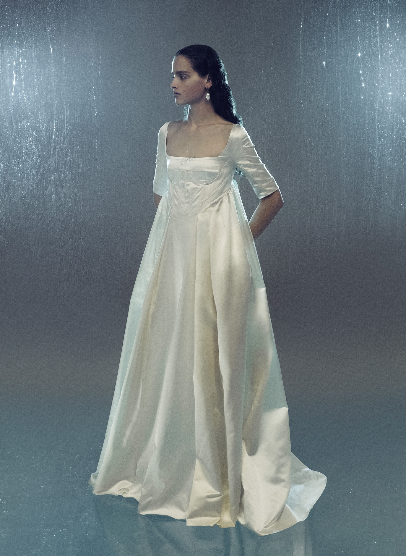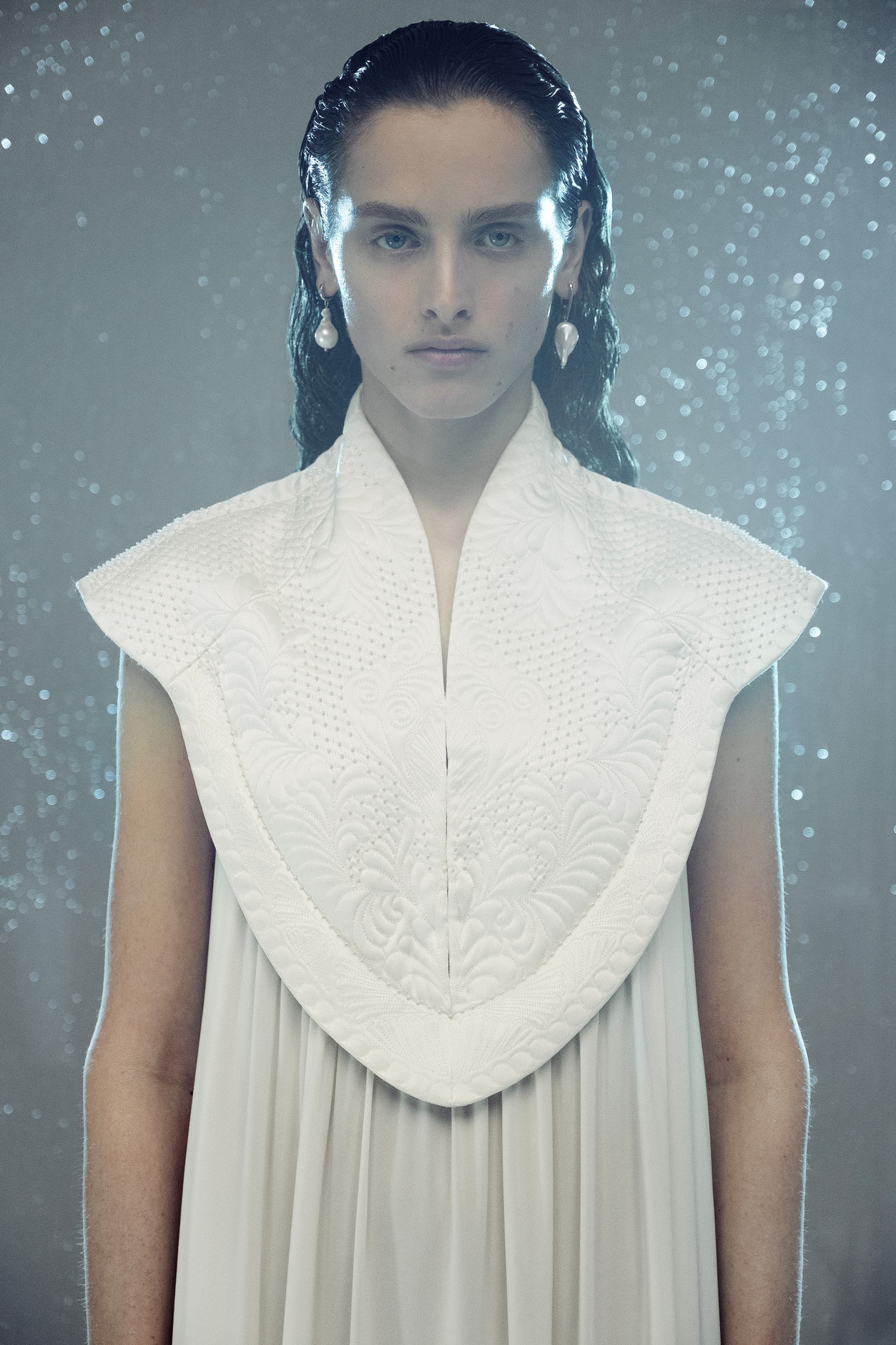 Российская марка Edem выпустила свадебную коллекцию. В нее вошли платья приталенного силуэта и короткие стеганые модели, декорированные жемчугом и стеклянными бусинами. А еще пальто — все в мягких силуэтах без тугих корсетов и каркасных юбок.