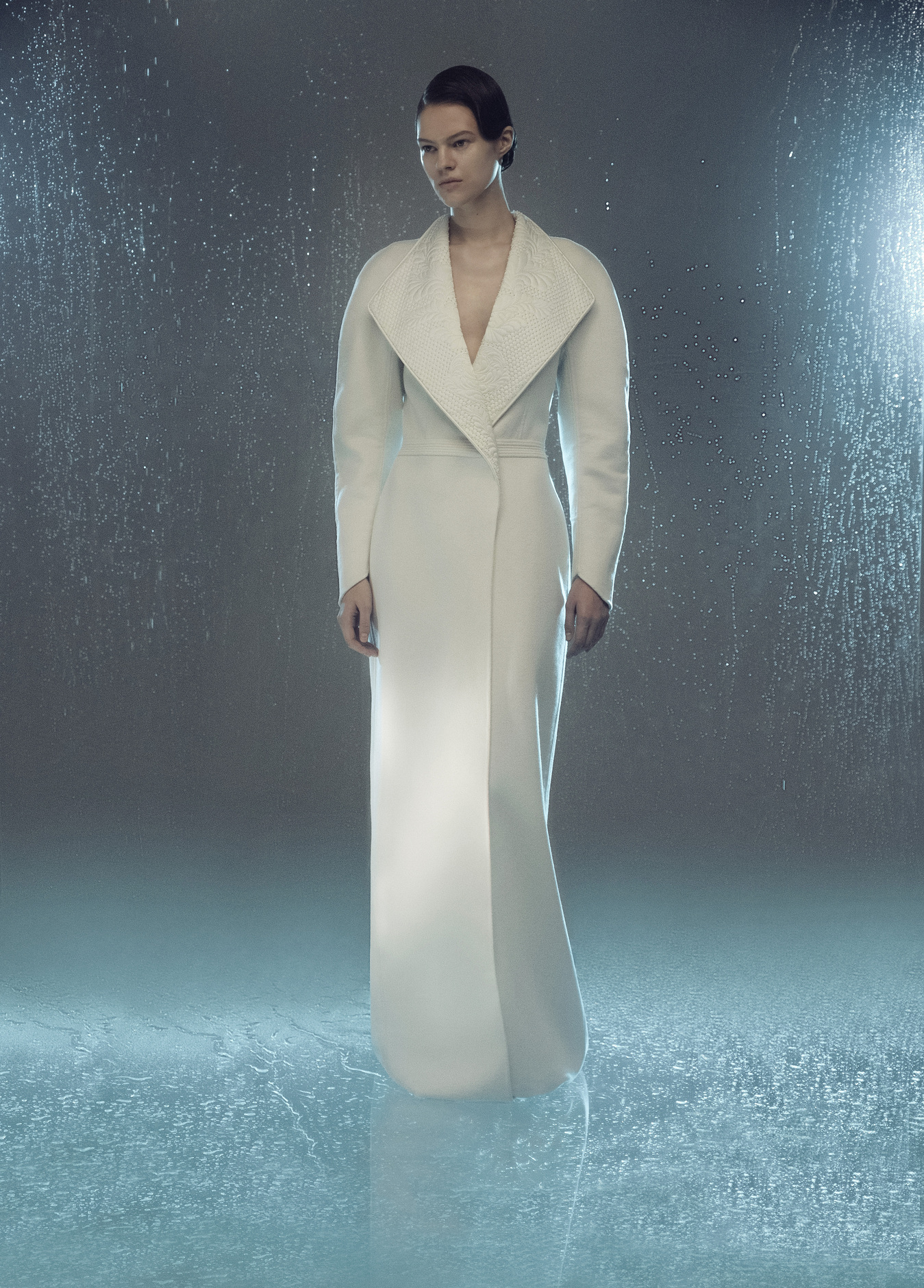 Edem работал с плотным шелком, бархатом, кашемиром, жаккардом и тонким кружевом шантильи ручной работы. Плиссировка на жаккарде сделана совместно с парижским ателье Lognon. В линии аксессуаров — кожаные поясы и перчатки из замши и шелка с кружевом и вышивкой.