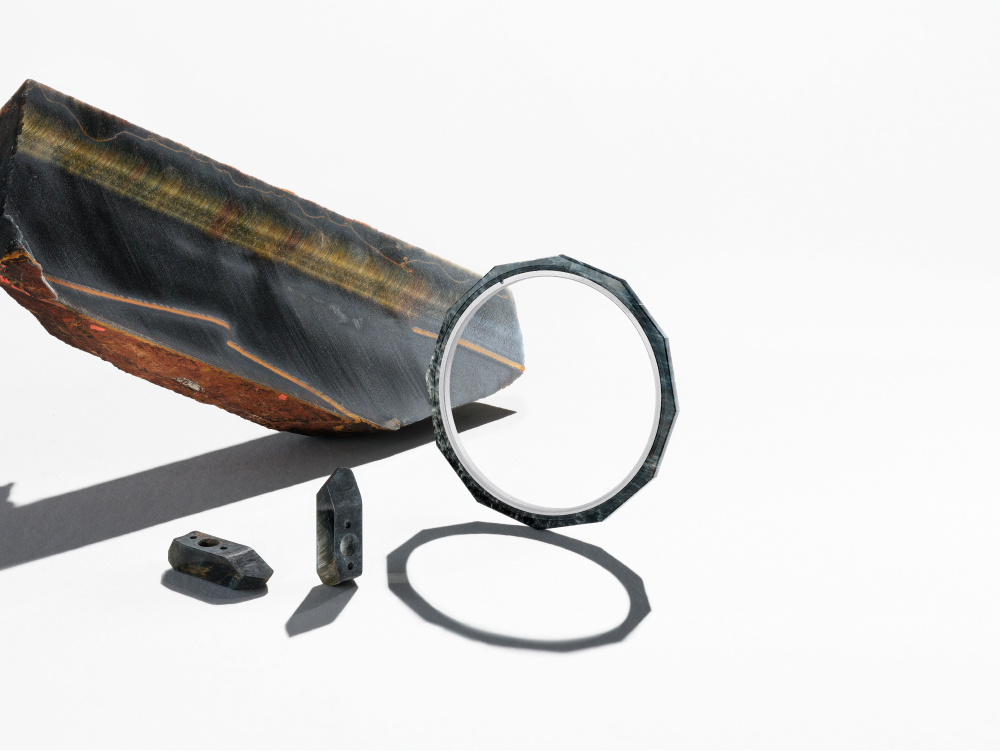 Еще одна яркая деталь — двенадцатигранный безель из крупнокристаллического кварца сине-серого цвета. Минерал назван соколиным глазом в честь птицы, которая веками сопровождала кочевников пустыни. Каждый камень отличается неповторимым оттенком и особенной структурой волокон, что делает каждый из 50 экземпляров Defy Extreme Desert уникальным.