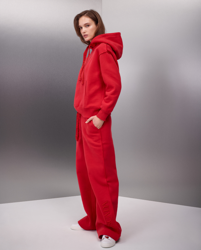 Вчера в Париже состоялась презентация новой капсульной коллекции Escada, созданной совместно с певицей и амбассадором бренда Ритой Ора. Источником вдохновения для коллаборации стали архивы немецкой марки, а основным цветом был выбран красный. В капсулу вошли худи, свободные брюки, свитеры, водолазки, футболки с вышивкой, блузки из полупрозрачного материала, двубортные пальто, кроссовки и ботильоны.