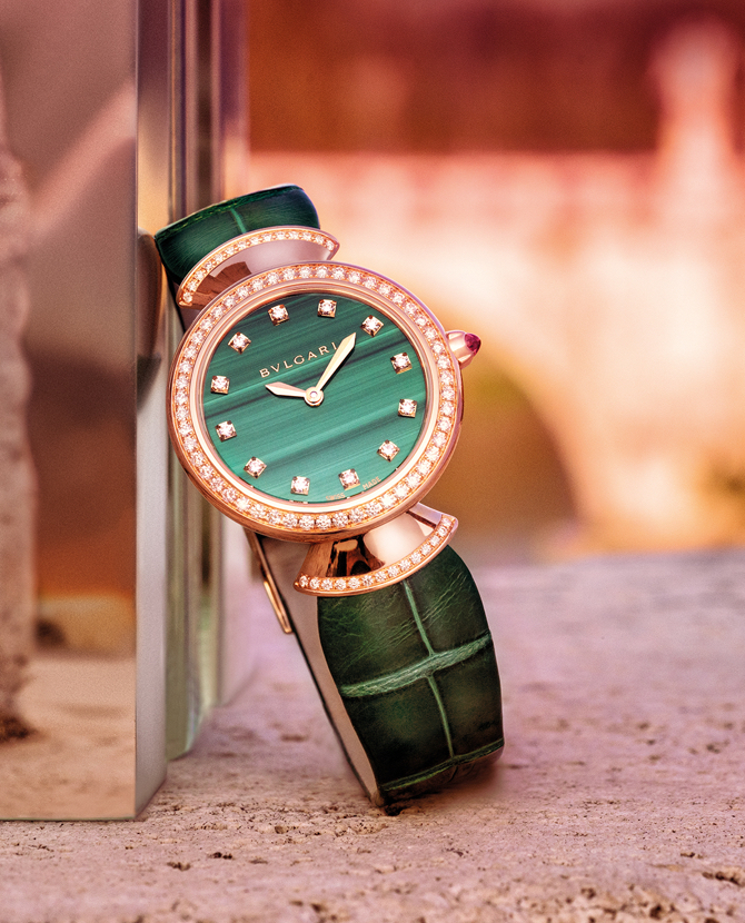 Римский ювелирный дом Bvlgari представил новые украшения из коллекции Divas’ Dream, посвященной кинодивам. В нее вошли подвески, кольца, серьги и браслеты из розового и белого золота с веерными элементами, напоминающими рисунок мозаики в древних банях Каракаллы, с малахитом, сердоликом, перламутром и бриллиантами, а также несколько моделей наручных часов, декорированных разноцветными драгоценными камнями.