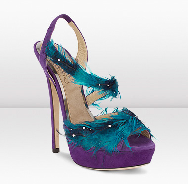 В основу легли легендарные босоножки Feather, в которых ходила Кэрри Брэдшоу, правда, ручная работа из перьев и кристаллов преобразила знаменитые туфли до неузнаваемости.