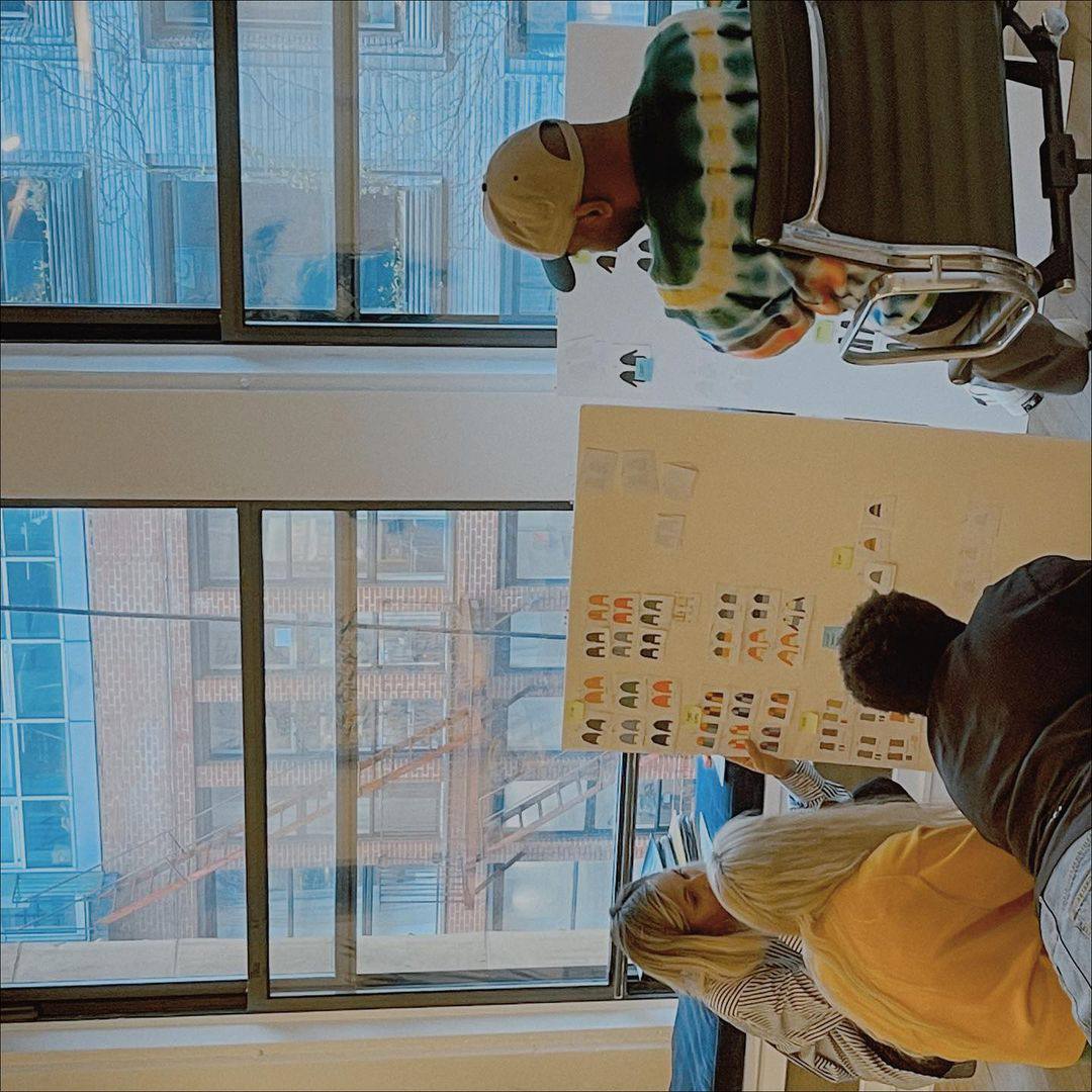 Хадид поделилась процессом работы в социальных сетях, подписав фотографии «Работаю над чем-то… С любовью, Guest in Residence». Также в шапку профиля модель добавила «основатель, креативный директор @guestinresidence».