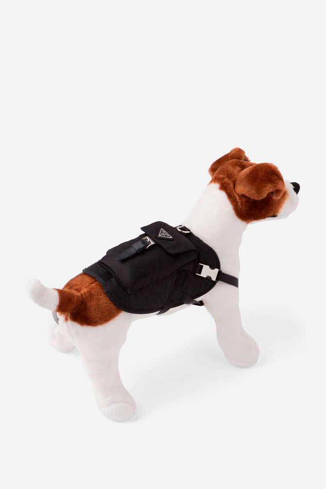 Prada выпустил капсульную коллекцию одежды для собак в рамках рождественских релизов 2020. В коллекцию вошли три куртки с логотипом бренда в виде металлического треугольника на спинке.