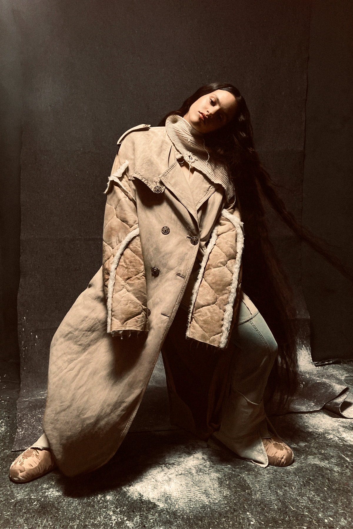 «Осенняя коллекция представляла собой коллаж из разных идей и чувств, поэтому мы хотели исследовать это столкновение исторических отсылок. Мы почувствовали, что Rosalía обладает уникальной способностью менять облик во времени, истории и культуре», — считает креативный директор Acne Studios Джонни Йоханссон.
