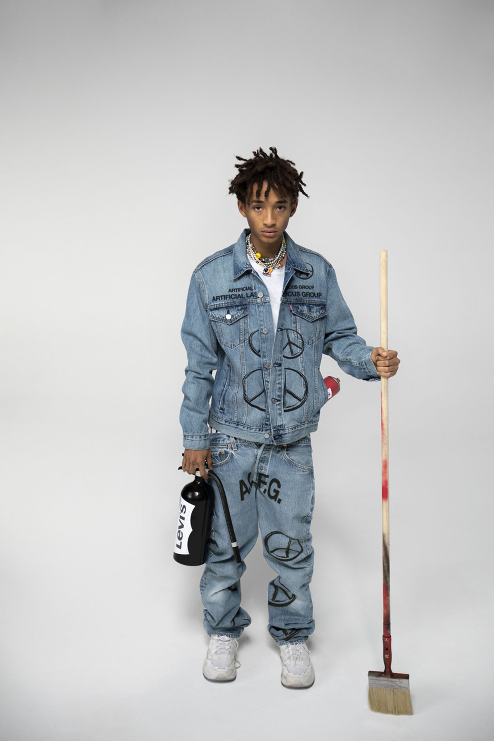 Джейден сам нарисовал графические принты, которые появляются на новых куртках из денима и 501-й модели джинсов в светло-голубых оттенках. На вещах можно увидеть текст «Artificial Laser Focus Group» («Искусственная лазерная фокус-группа»). Для Смита эта надпись символизирует его желание освещать каждое помещение своим внутренним светом.