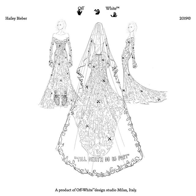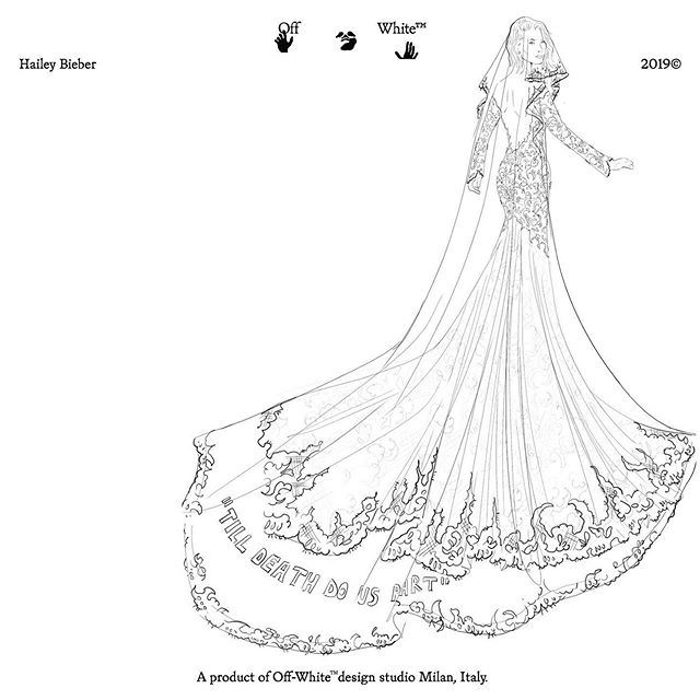 30 сентября Джастин и Хейли Бибер провели свою вторую, торжественную, свадебную церемонию, на которой присутствовали Кендалл Дженнер, Кэти Перри, Джейден Смит, Эд Ширан и Джоан Смоллс. Невеста шла к алтарю в платье, созданном Вирджилом Абло. Сегодня основатель Off-White поделился в своем инстаграме снимками как самого наряда Хейли, так и его эскизами.