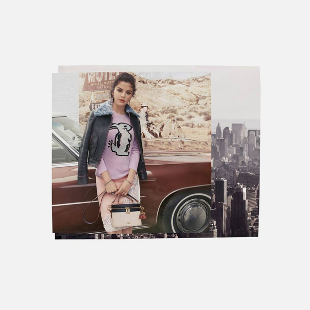 Автором снимков рекламной кампании коллаборации стал фотограф Стивен Мейзел, а макияж Селене сделала знаменитый визажист Пэт Макграт. Ранее они уже поработали все вместе над кампанией осенне-зимней коллекции Coach, снятой в аналогичной эстетике. На первых фотографиях можно увидеть новые сумки The Bond и The Trail Bag, платье-комбинацию с кружевной отделкой, кардиган нежно-розового цвета, свитер с рисунком и кожаную куртку с меховым воротником.